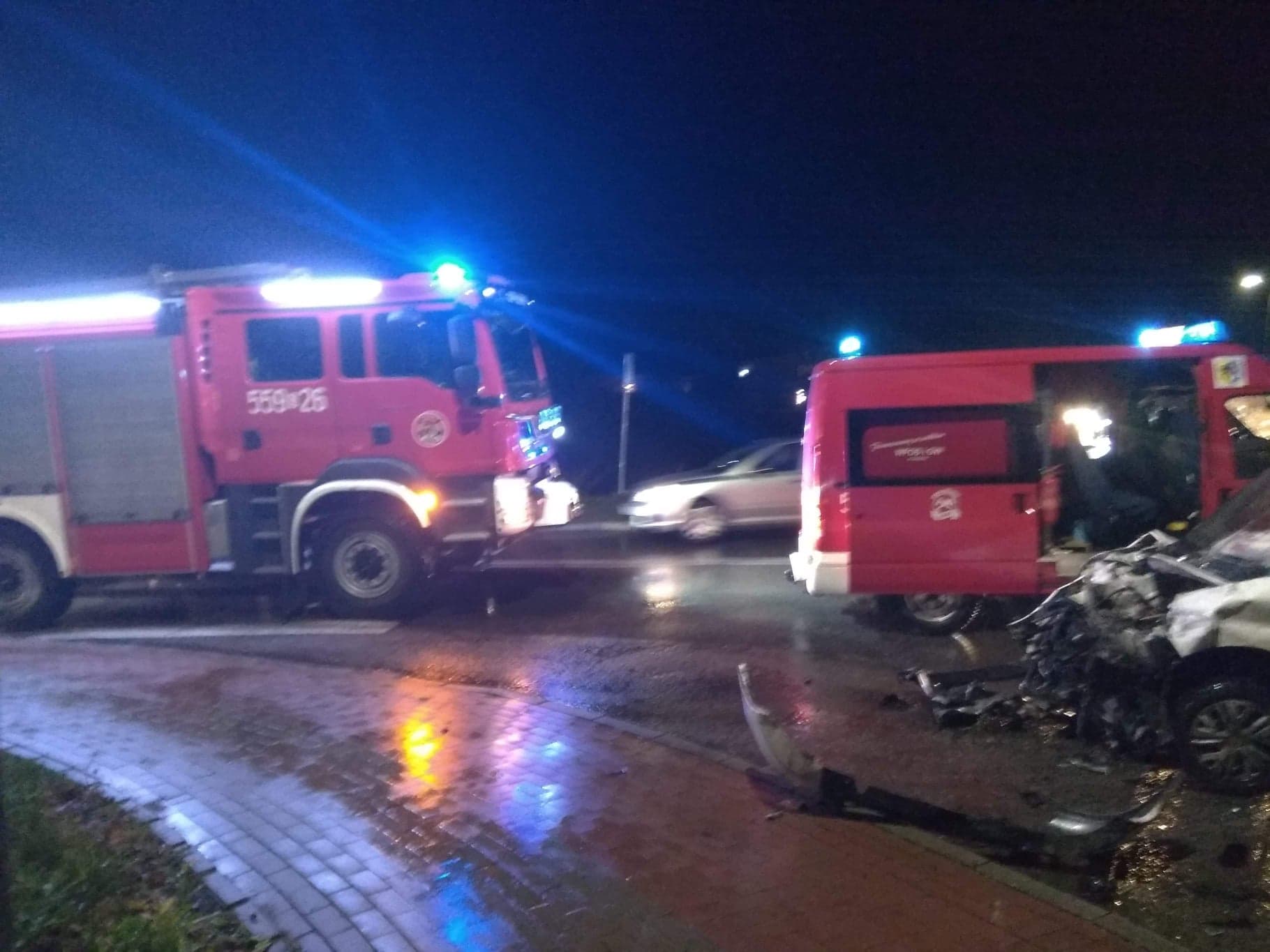 Na miejscu okazało się, że dwa samochody zderzyły się, w wyniku czego poszkodowane zostały dwie osoby. Te zostały przebadane i zabrane na dalsze konsultacje medyczne do szpitala.