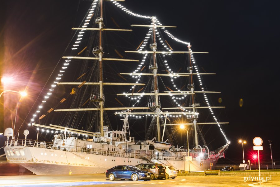 „Dar Młodzieży” jest zacumowany przy Nabrzeżu Południowym, gdzie można podziwiać świąteczną iluminację. Warto zaznaczyć, że świąteczne światła zabłysły na jednostce już po raz drugi. Inauguracja miała miejsce w ubiegłym roku, w Los Angeles, gdy żaglowiec odbywał rejs dookoła świata.