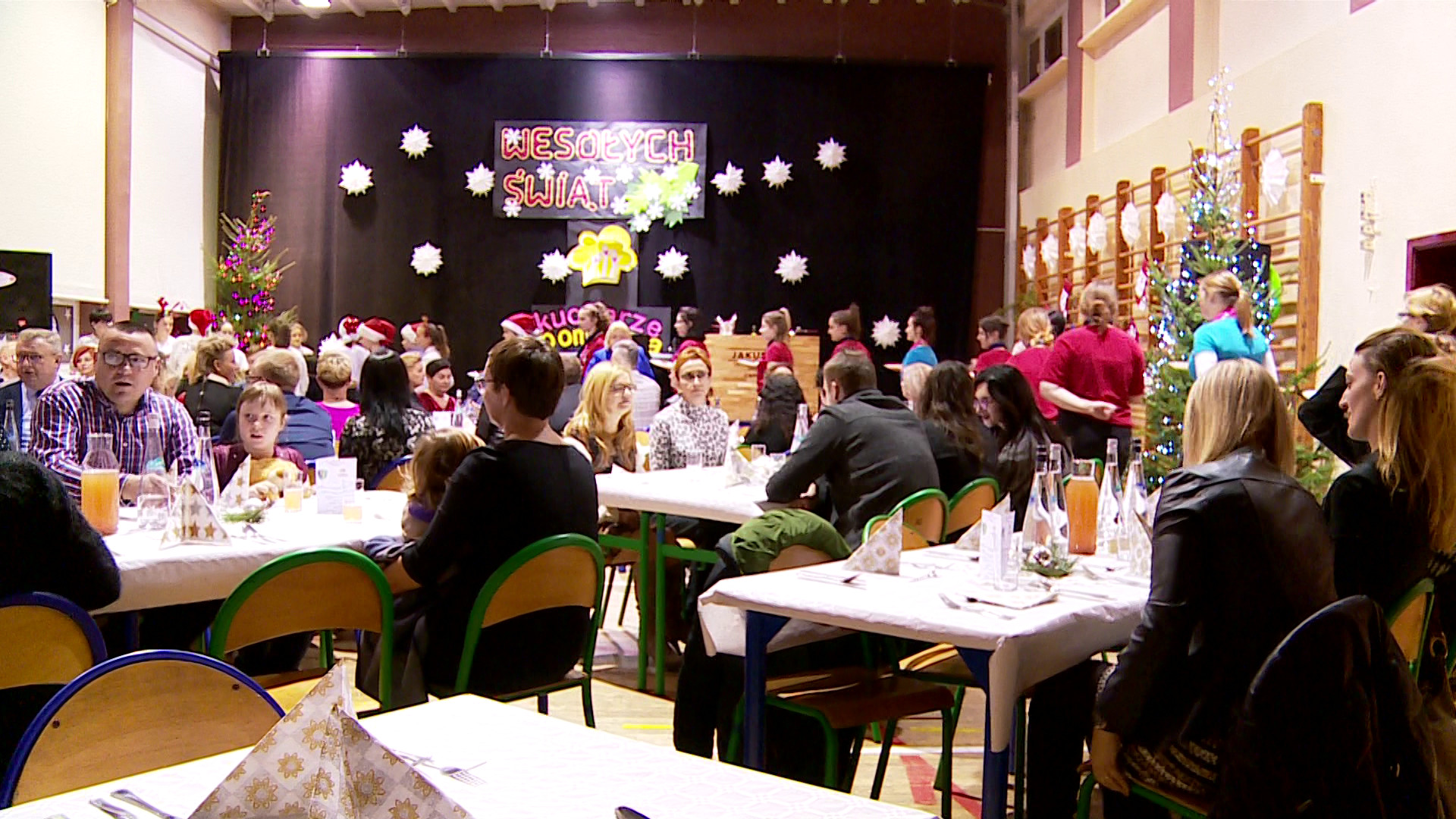 Hala gimnastyczna na jeden wieczór zamieniła się w ogromną salę restauracyjną, na której kelnerzy-uczniowie podawali gościom wyśmienite dania w świątecznych wersjach. Prawie 100 talerzy, tyle samo uśmiechniętych twarzy i pobudzonych kubków smakowych – tak można podsumować akcję, która odbyła się dzięki inicjatywie Kucharze Pomagają.