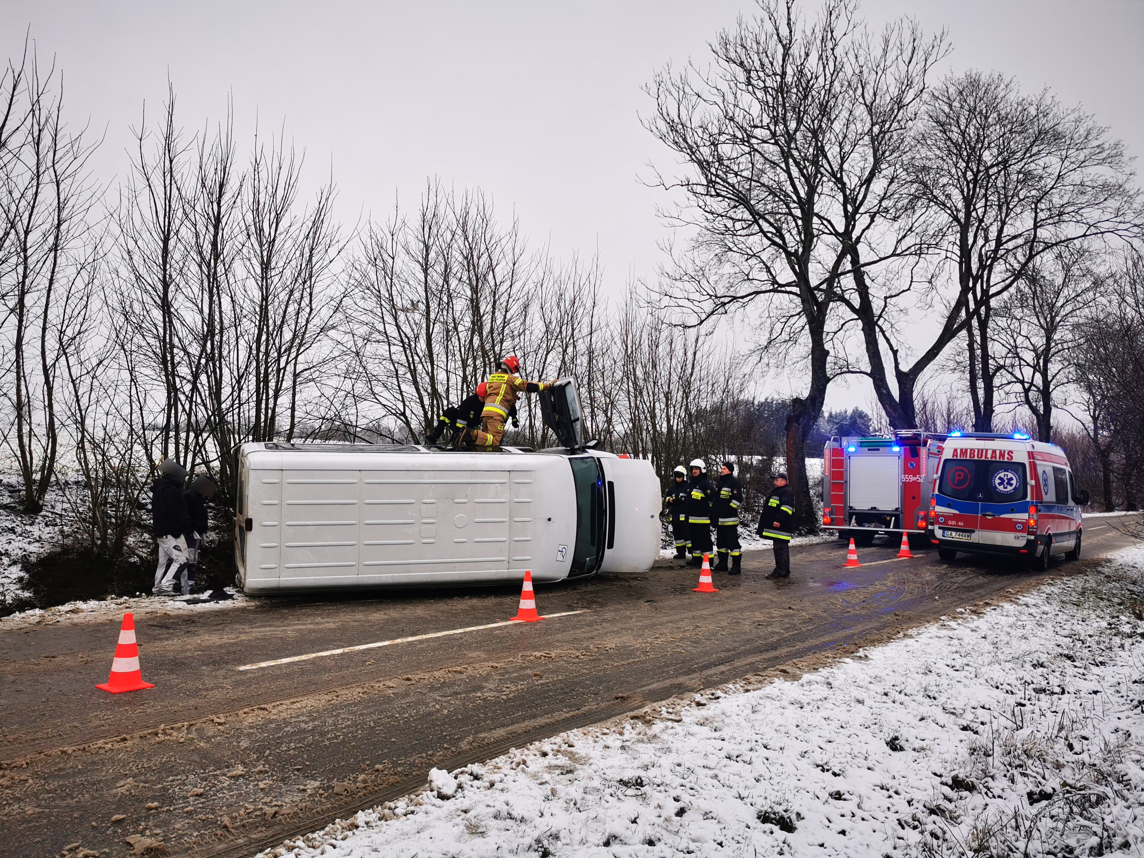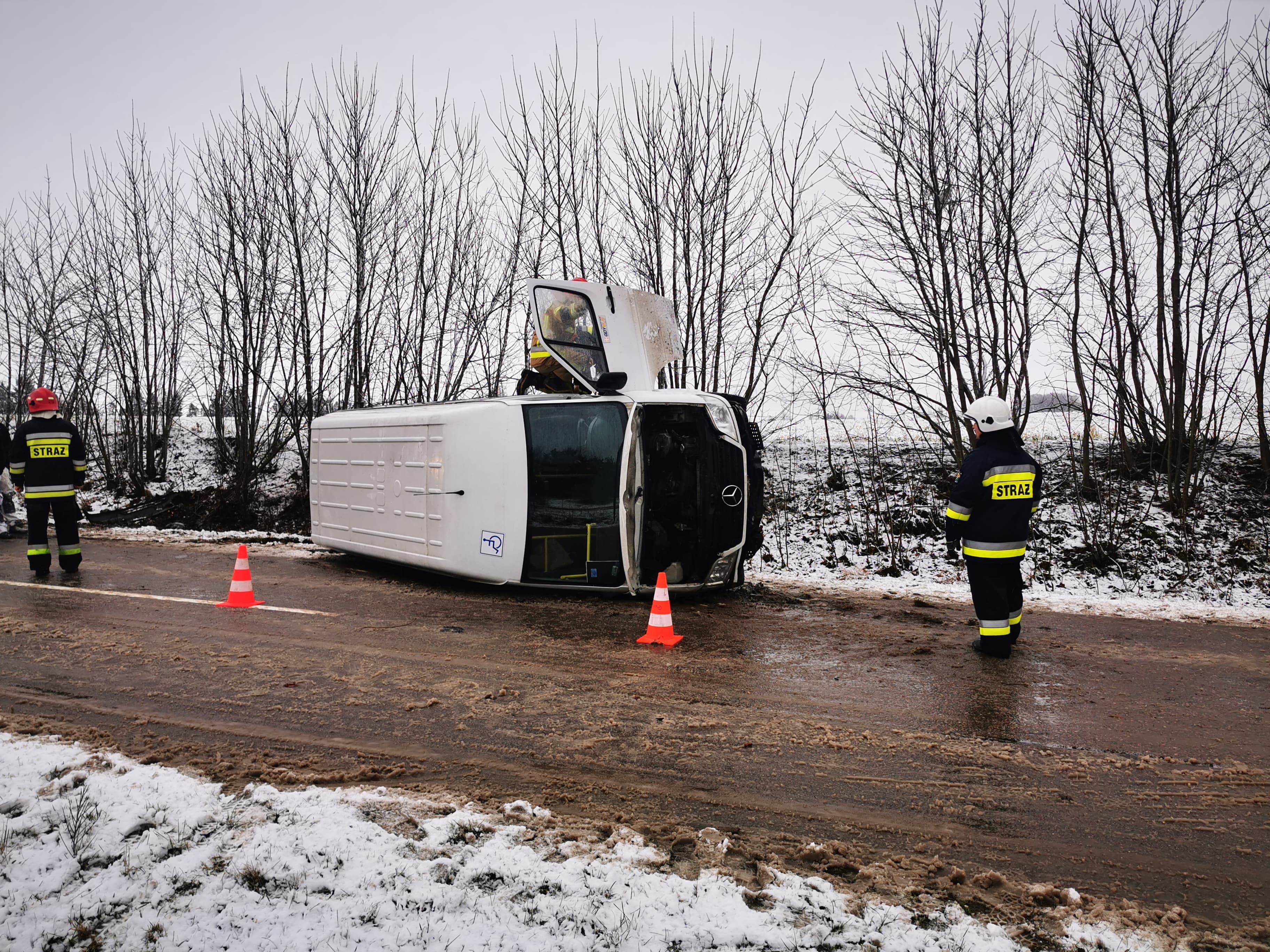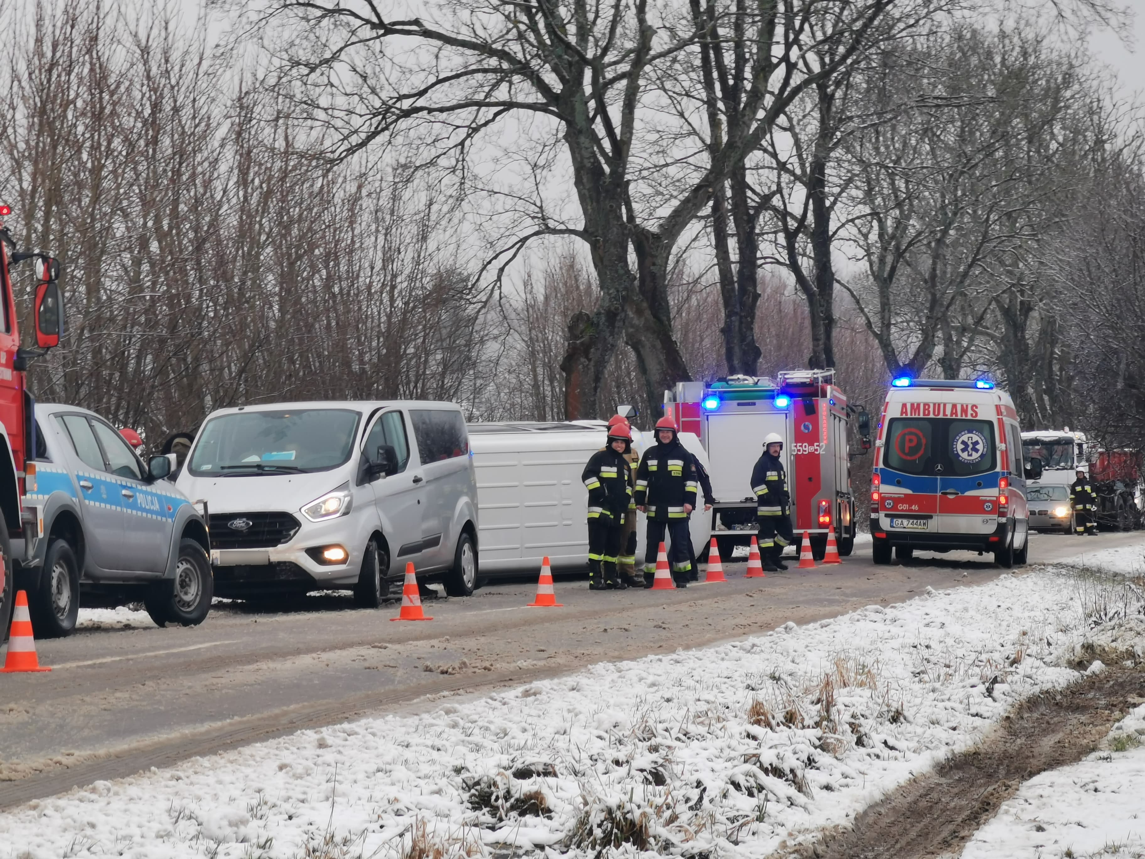 Informacja o zdarzeniu drogowym w Częstkowie wpłynęła do wejherowskich strażaków około godziny 8:20. Na miejsce udali się policjanci z wejherowskiej drogówki. zadysponowano również zespoły ratownictwa medycznego. Bus wpadł w poślizg, a następnie znalazł się w rowie i przewrócił się na bok. Jako pierwsi pomocy udzielili poszkodowanym pracownicy budowlani, którzy przejeżdżali trasą między Częstkowem a Strzepczem.