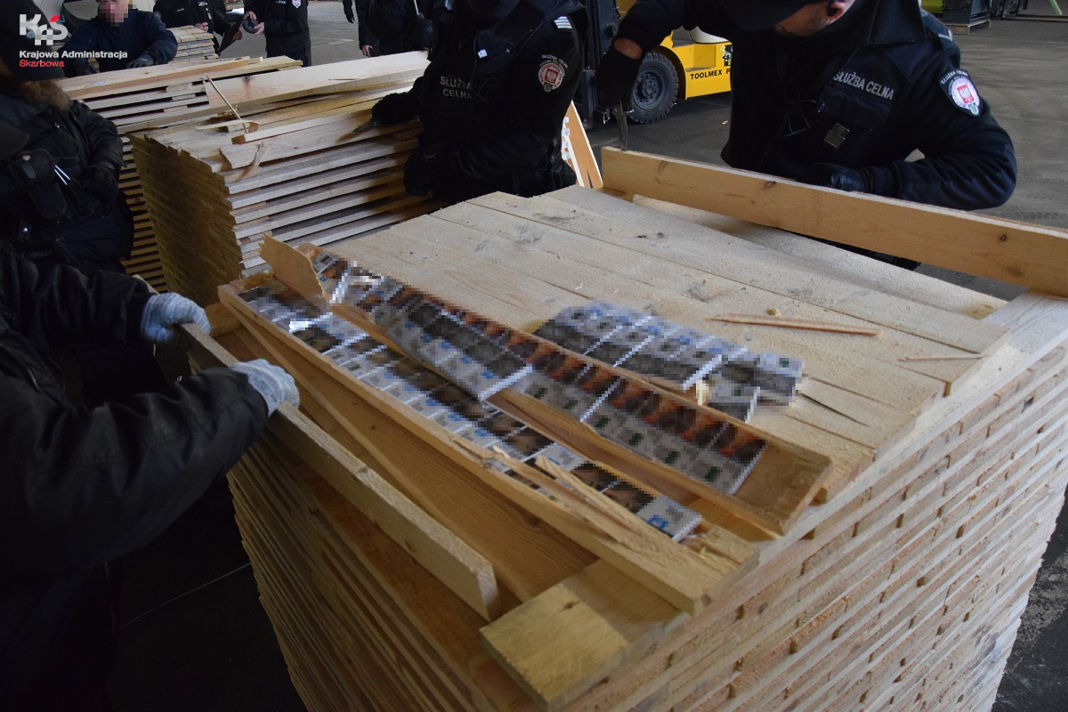 Pomysłowością wykazali się przemytnicy papierosów, którzy ukryli kontrabandę w specjalnie wydrążonych deskach. Docelowo nielegalny towar, który przypłynął do Gdańska z St. Petersburga, miał trafić do Rumuni. Celnicy ujawnili łącznie prawie 3,2 miliona sztuk papierosów o wartości około 2,3 miliona złotych.