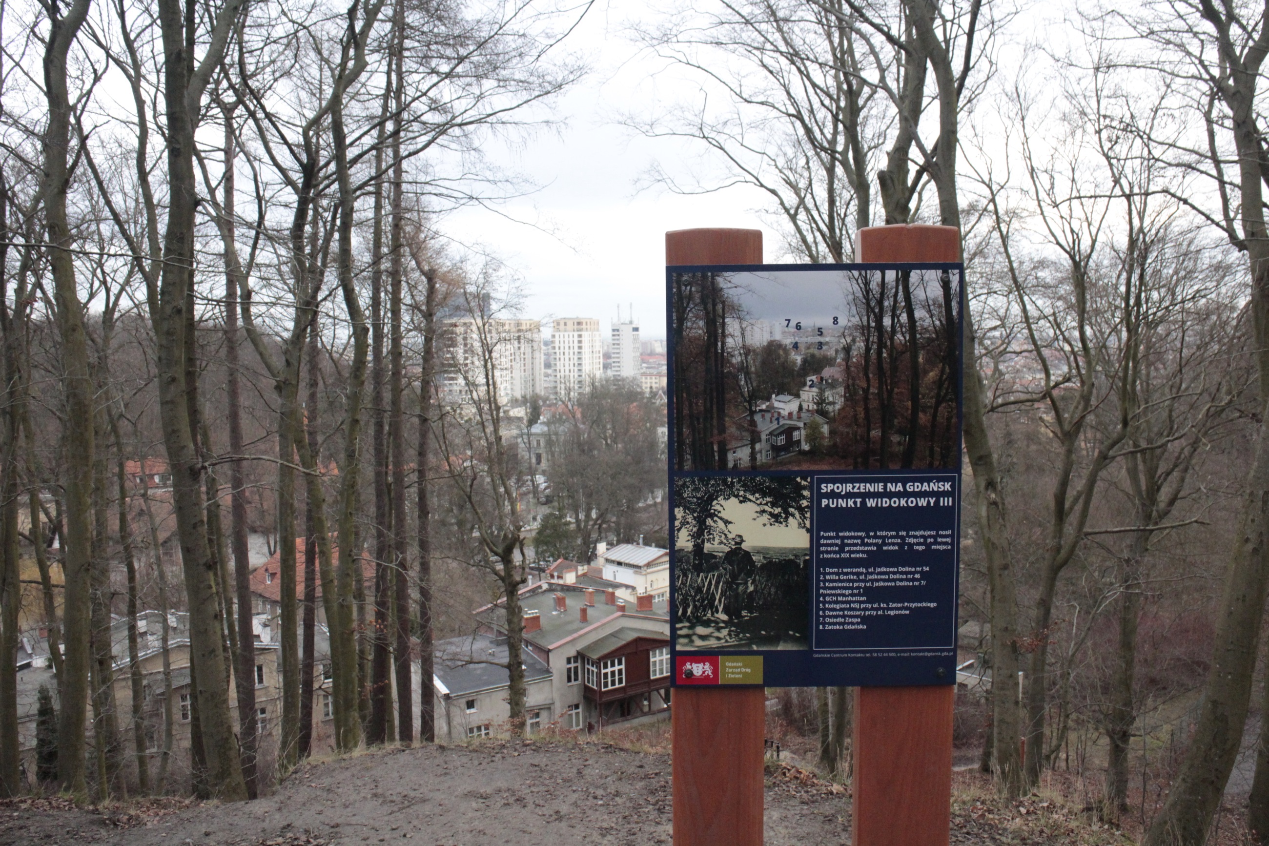 Na przełomie grudnia 2019 roku i stycznia 2020 GZDiZ doposażył punkty widokowe na Podleśnej Polanie (przy ul. Podleśnej) oraz nad tzw. Kaczym Dołkiem (przy ul. Jaśkowa Dolina). Na drodze do każdego z punktów ustawiono po trzy słupy kierunkowe, a na szczycie tablicę informacyjną. Zawiera ona krótki opis historyczny widoku i ma zaznaczone charakterystyczne miejsca, które można z niej dostrzec, podaje ZDiZ w Gdańsku.