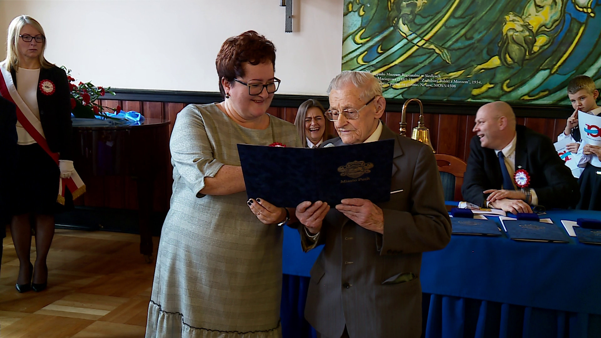 Następnie, w towarzystwie Tadeusza Juszczyna, który także obchodzi swoje setne urodziny, przekazano akt erekcyjny młodym mieszkańcom Pucka. Ci mają zadbać, aby pamięć o tym wydarzeniu przetrwała przez kolejne lata.