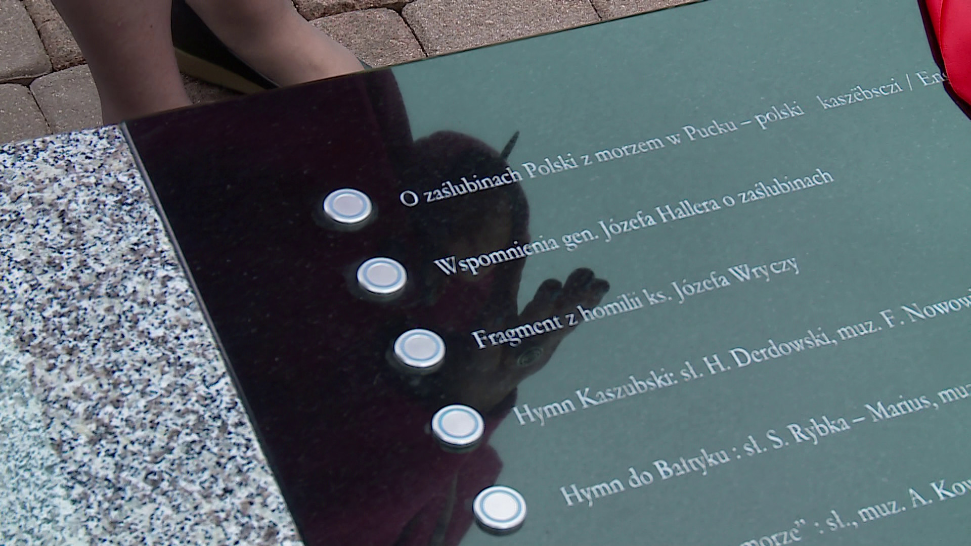 Ławeczka jest „bogata” w repertuar. Siedząc na niej, można posłuchać hymnu kaszubskiego, wspomnień Hallera czy fragmentu homilii ks. Józefa Wryczy. To jednak nie wszystko. Odsłonięto także replikę słupka z 1920 roku oraz specjalnie wykonaną z okazji zaślubin ławkę o nazwie „Fala”.