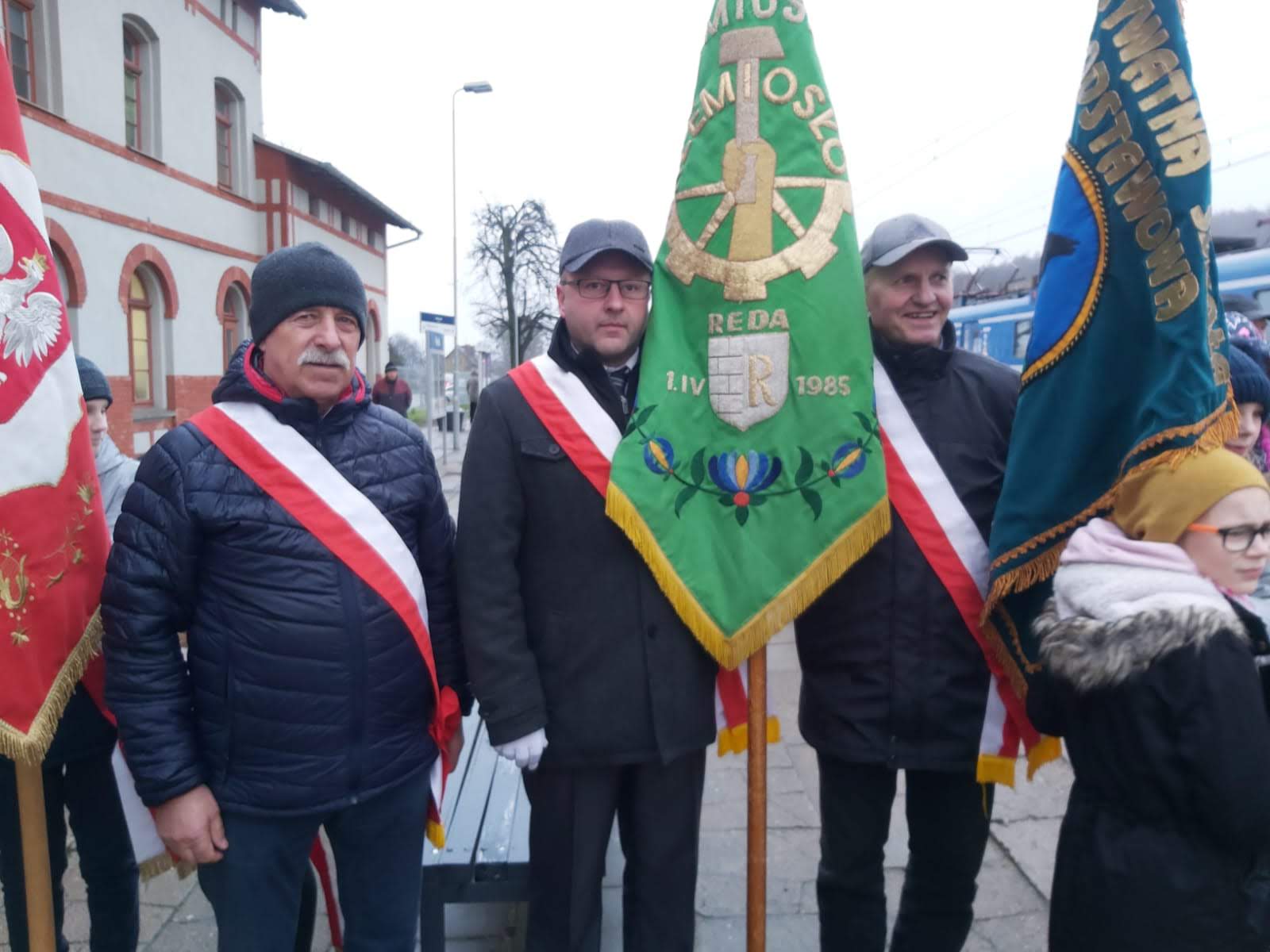 Mieszkańcy Redy oczekują na dworcu PKP na przyjazd okolicznościowego pociągu z gen. Hallerem na pokładzie.