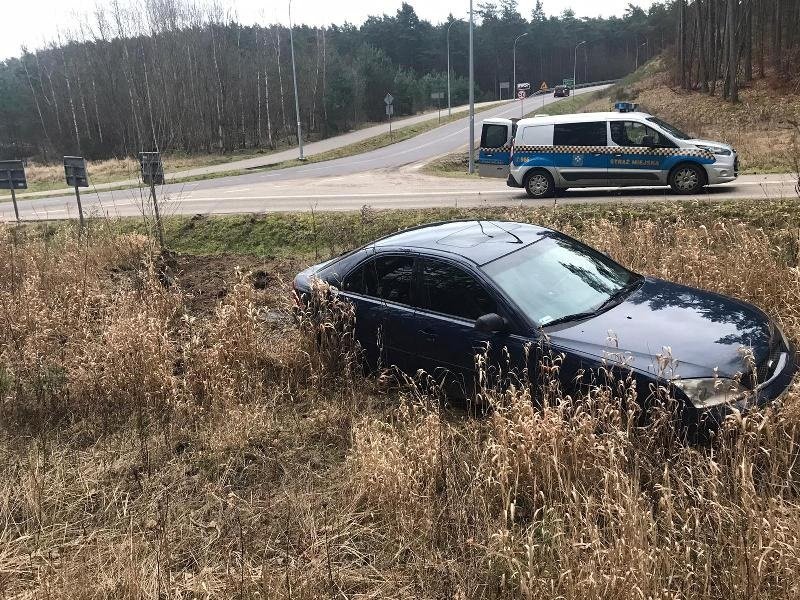 W niedzielę (16 lutego) wejherowscy strażnicy miejscy otrzymali zgłoszenie około godziny 15:45, że w obrębie ulicy Zybertowskiej, przy dojeździe do Ronda Sucharskiego, samochód osobowy wypadł z drogi i stoi 100 metrów od pasa ruchu, w zaroślach. Do wspólnych działań na miejscu włączyli się policjanci z drogówki.