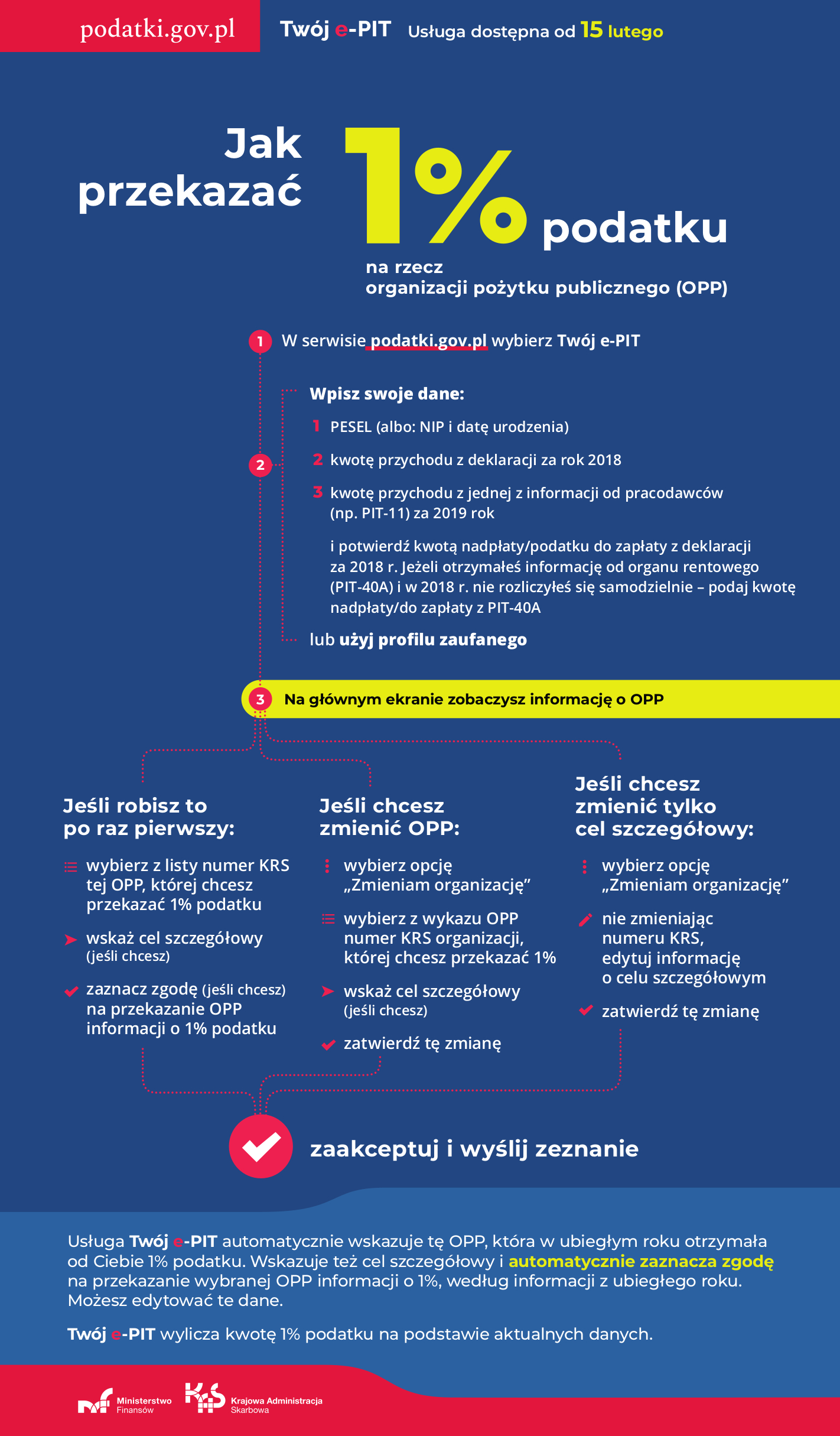 Każdego roku podatnicy mogą przekazywać 1% podatku wykazanego w ich rocznej deklaracji PIT bezpośrednio na rzecz organizacji pożytku publicznego. Dla podatnika nie wiąże się to z żadnym dodatkowym obciążeniem, a wielu fundacjom i innym podmiotom – stwarza możliwości do rozwoju i pomocy innym.