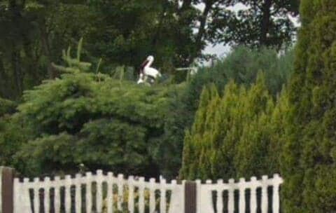 Jak można przypuszczać, uwagę sympatycznego ptaka przykuł drugi bocian, a w zasadzie… jego figura, usadowiona na szczycie choinki. Sztuczny bocian, w skali 1:1, został wykonany na tyle realistycznie, że wielce prawdopodobne, iż prawdziwy ptak zapałał do niego uczuciem. Jak zwrócił uwagę jeden z naszych czytelników zdjęcie drugiego z bocianów można znaleźć na serwerach Google.