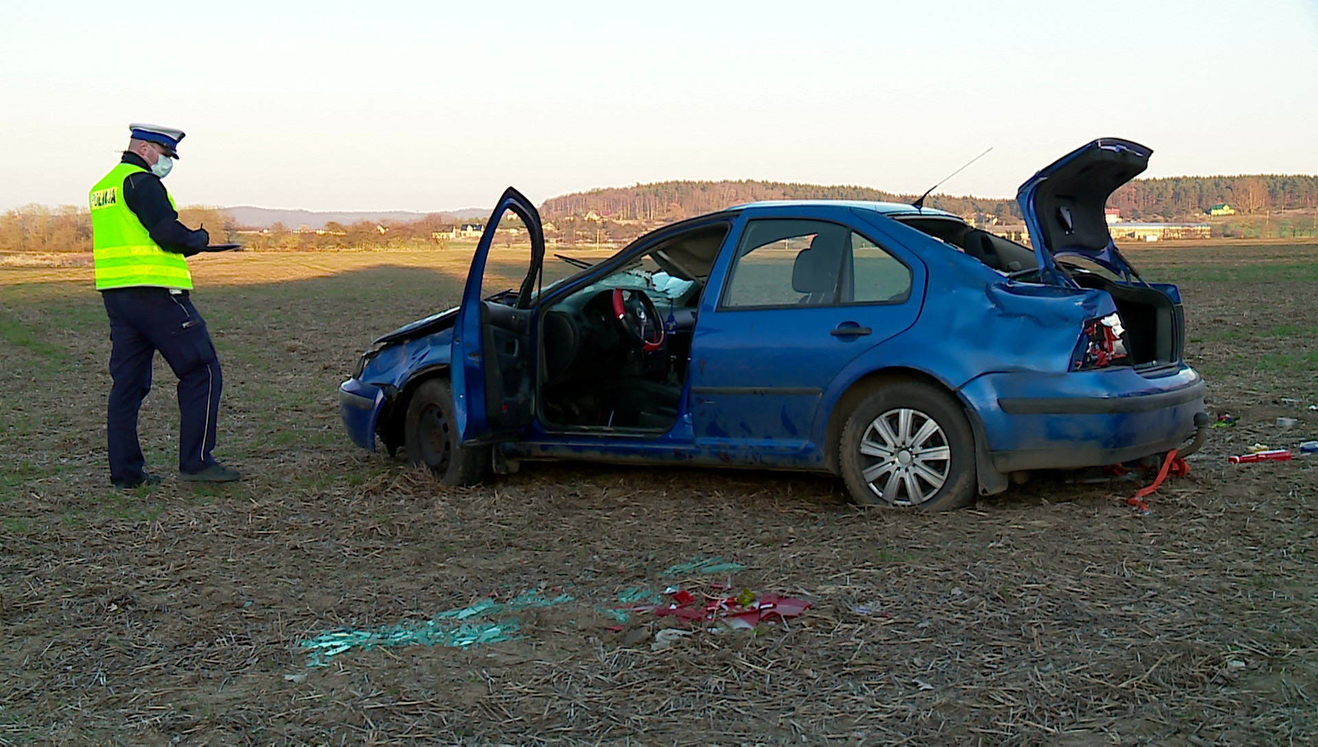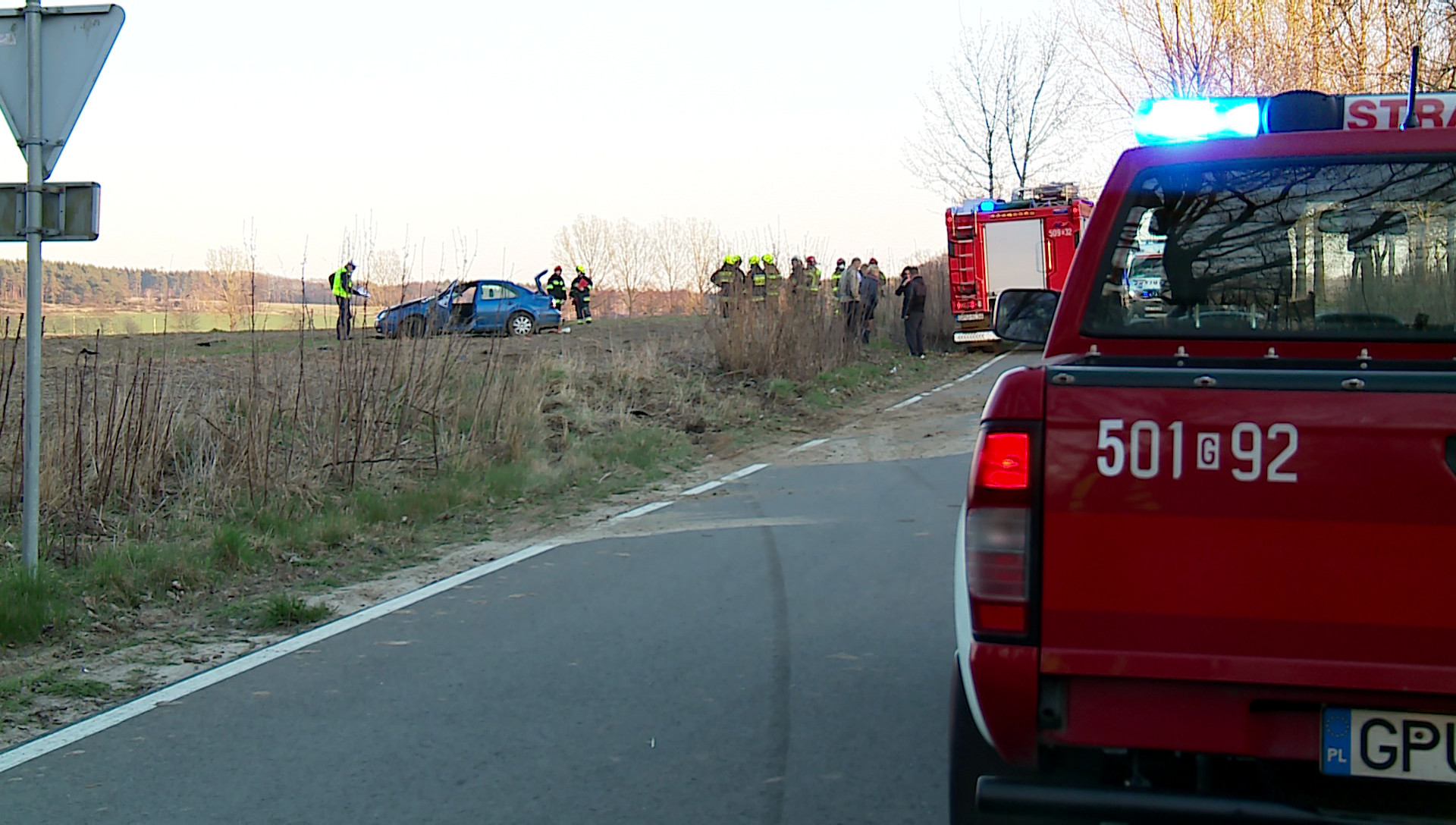 O godzinie 16:20 do służb wpłynęło zawiadomienie o niebezpiecznym wypadku, do jakiego doszło w Prusewie. Ze wstępnych informacji wynikało, że w zdarzeniu poważnie poszkodowana została jedna osoba, która wypadła przez jedną z szyb i została przygnieciona przez samochód.