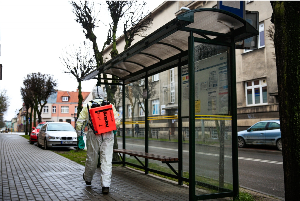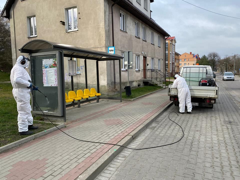 Pracownicy Zakładu Usług Komunalnych na polecenie prezydenta Wejherowa dezynfekują przystanki, ławki i tablice z rozkładem jazdy. Podobne zalecenie wydała burmistrz Pucka. Odkażanie prowadzone jest za pomocą specjalnego preparatu dezynfekcyjnego.