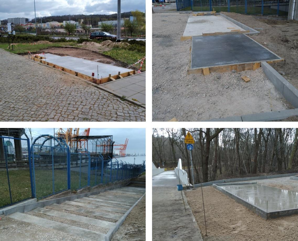 Na ten moment przygotowane zostały warstwy pod nawierzchnie placów oraz fundamenty pod schody na parkingu P1 przy ulicy Janka Wiśniewskiego. Ponadto zatwierdzane są materiały pokrycia schodów i małej architektury, a także projektowane nasadzenia zieleni. Parkingi rowerowe wraz z małą architekturą budowane są także przy węźle Ofiar Grudnia '70, w Orłowie.