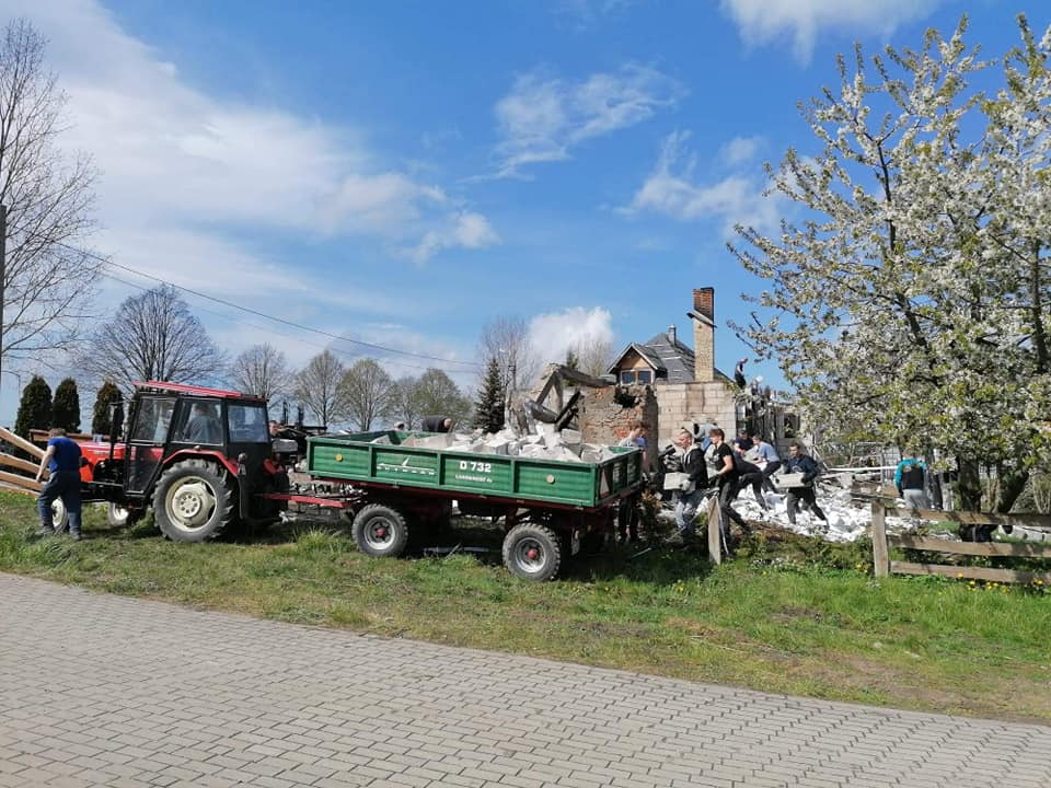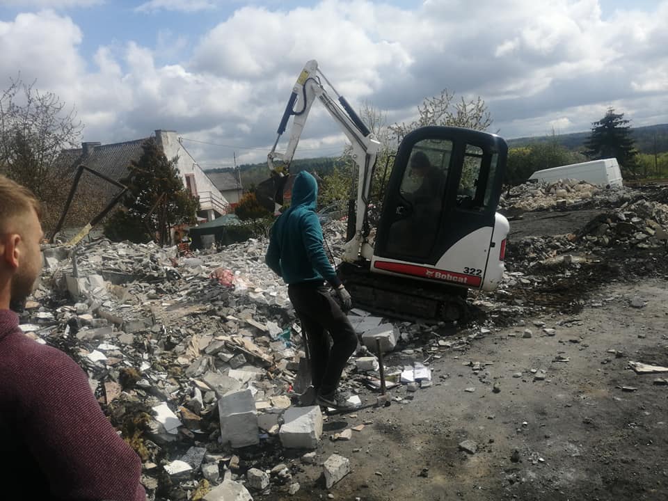 Dom całkowicie spłonął, a rodzina oraz najbliżsi znajomi błyskawicznie przybyli z pomocą. Już następnego dnia po tragedii wszyscy wspólnie zabrali się do usuwania skutków pożaru. W weekend majowy dom częściowo został wyburzony i trwały prace związane z wywózką gruzu. Następnym etapem będzie przygotowanie placu pod budowę nowego domu, co niestety wiąże się z ogromnym kosztem.