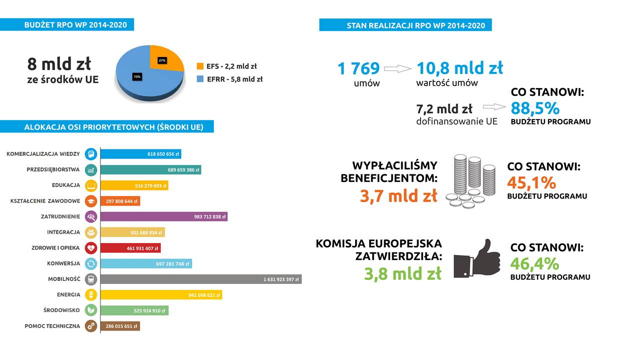 Do końca kwietnia 2020 r. podpisanych zostało 1 769 umów o dofinansowanie projektów w ramach Regionalnego Programu Operacyjnego Województwa Pomorskiego na lata 2014-2020. Łączna ich wartość to 10,8 mld zł przy wsparciu unijnym wynoszącym około 7,2 mld zł. Te liczny robią wrażenie, choć będą wciąż rosły.
