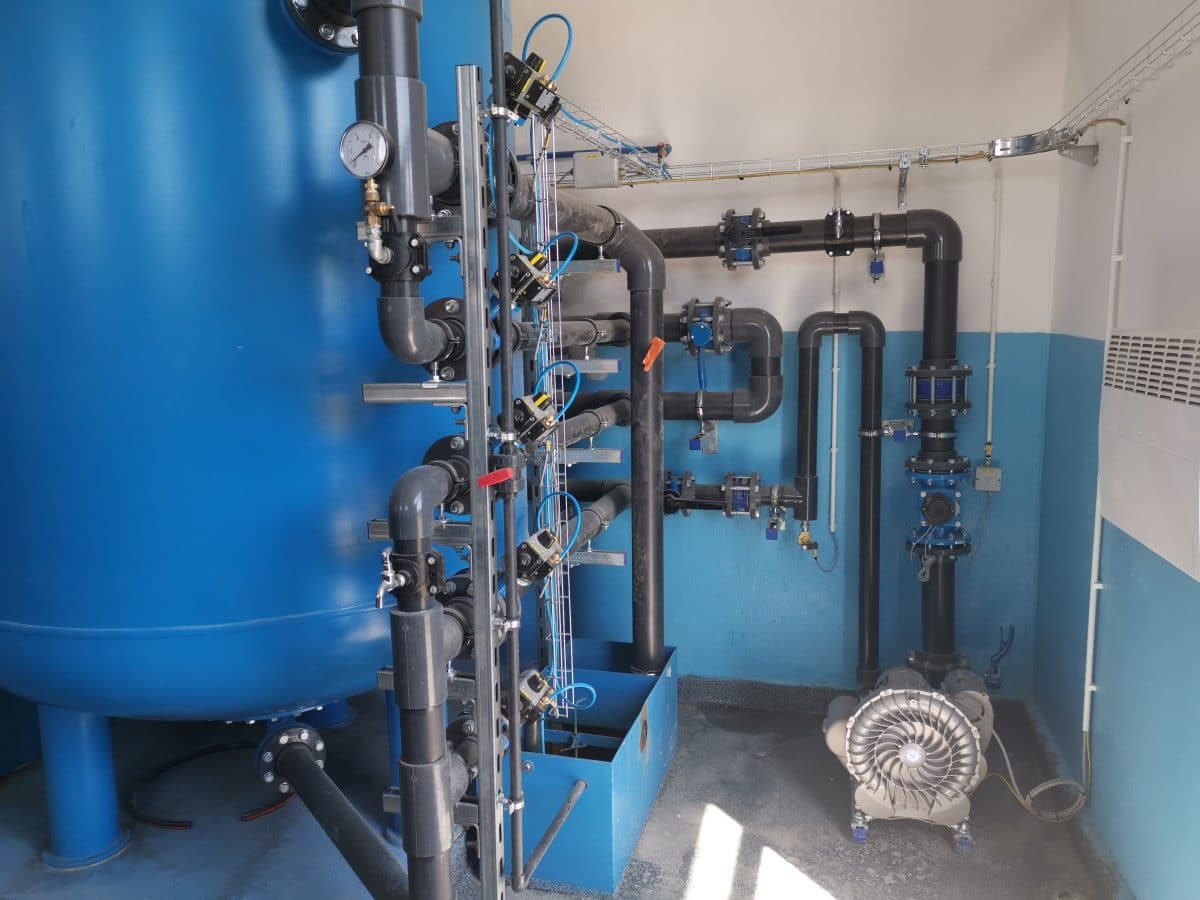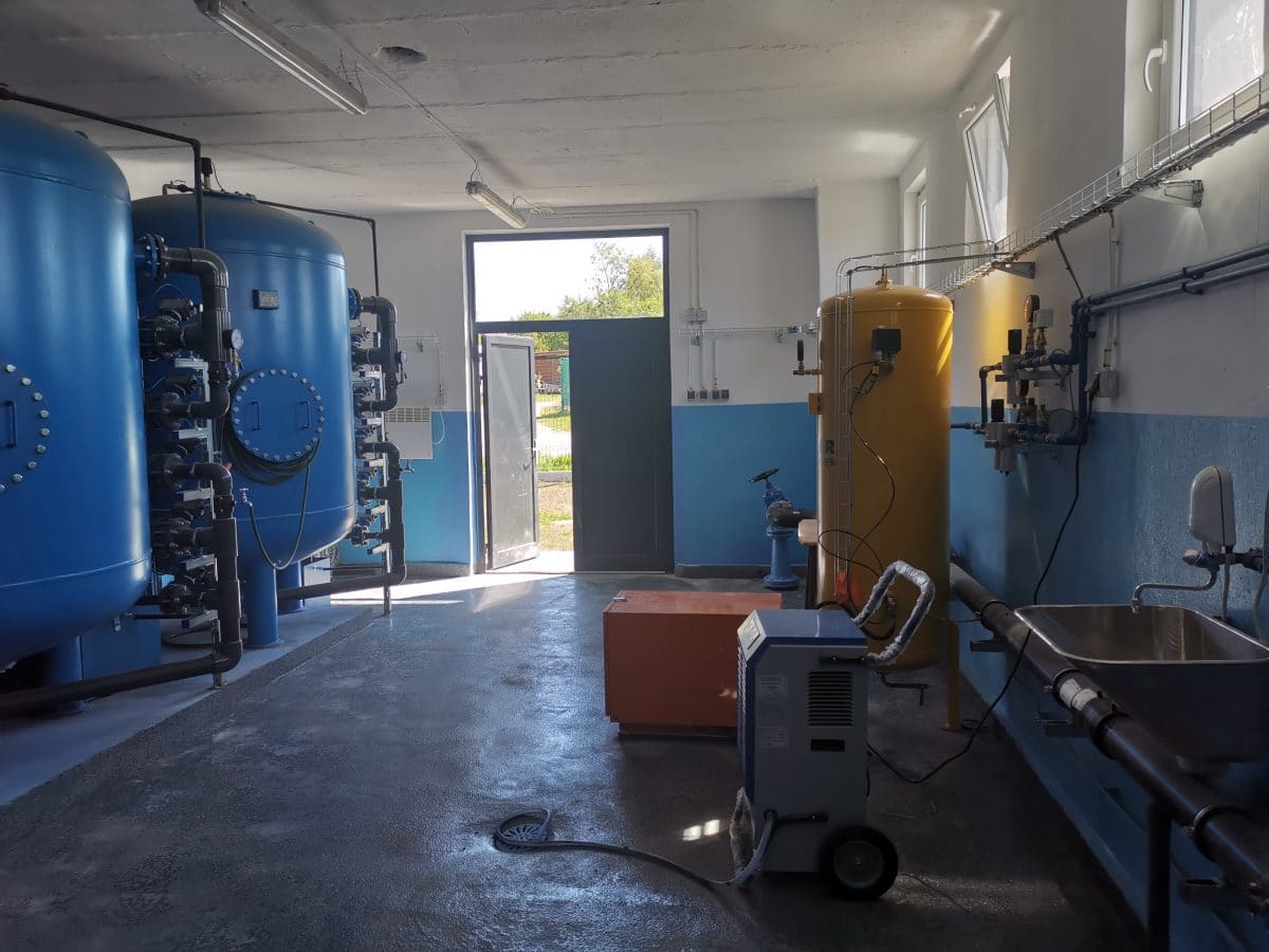 W ramach kompleksowej inwestycji przekazano do użytkowania zbiornik retencyjny dla wody uzdatnione. Jest wyposażony w zestaw pomp dystrybucyjnych oraz w rozdzielnicę zestawu hydroforowego RZH.