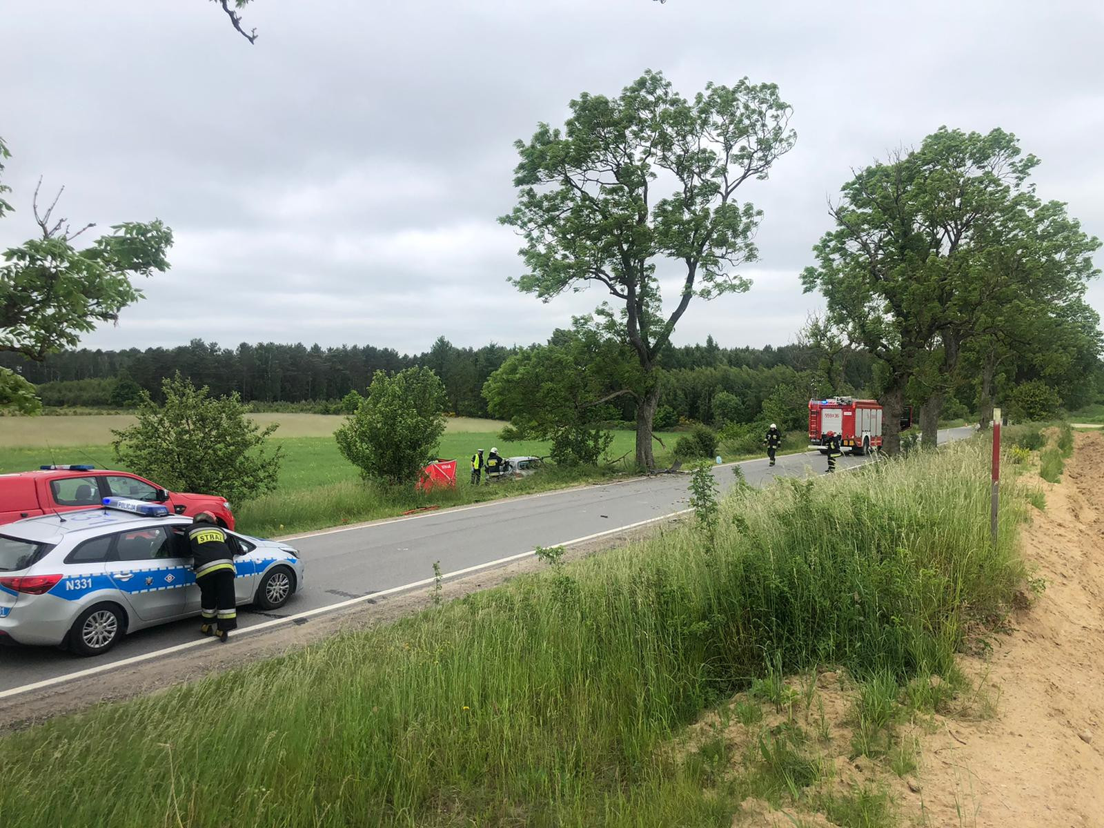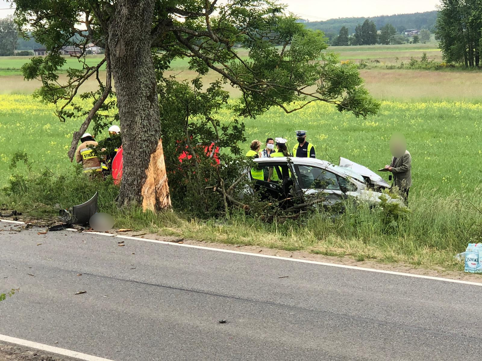 Do zdarzenia doszło około godziny 13:15, na drodze łączącej Brzeźno Lęborskie ze Świchowem. Kierujący samochodem z nieznanych na razie przyczyn stracił panowanie nad pojazdem i uderzył w przydrożne drzewo. Na miejsce zadysponowano zespoły ratownictwa medycznego oraz pięć zastępów strażackich. Informacje o zdarzeniu potwierdziła sierż. Karolina Pruchniak z Komedy Powiatowej Policji w Wejherowie.