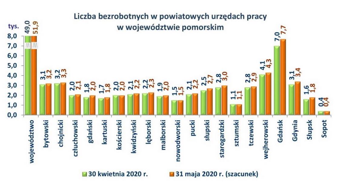 W maju wielu pracowników, którzy przez kilka tygodni stosowali się do ograniczeń społecznych i wykonywali swoje obowiązki zdalnie, wróciło do normalnego trybu pracy. Jednak był to czas stopniowego i powolnego znoszenia obowiązujących ograniczeń. Wiele przedsiębiorstw nadal nie funkcjonuje według zasad sprzed pandemii koronawirusa. Trudno zatem dokładnie oszacować, jak sytuacja kryzysowa wpłynęła na pomorski rynek pracy.