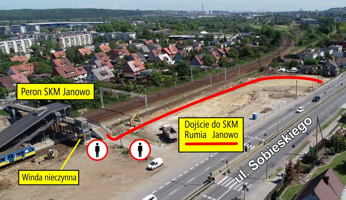Pojawią się utrudnienia w dojściu pieszych do przystanku SKM Janowo. Pierwszy etap prac będzie obejmował budowę dojazdu do tunelu, budowę murów oporowych oraz parkingu przy ul. Polnej. Dojście zostało wyznaczone przez teren budowy, co może nieco wydłużyć czas na dojście na peron z czym muszą od początku tygodnia liczyć się podróżni.