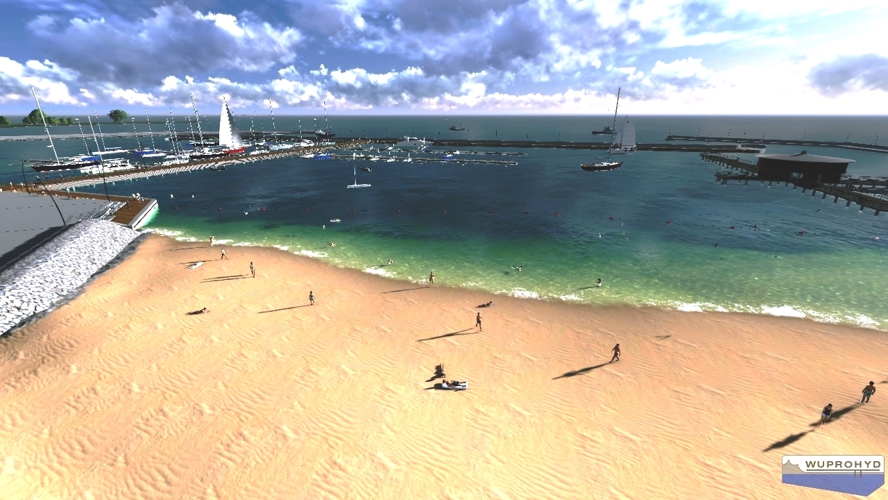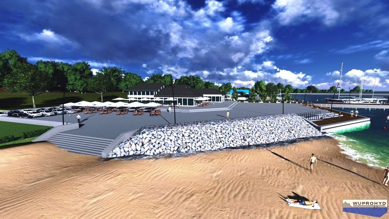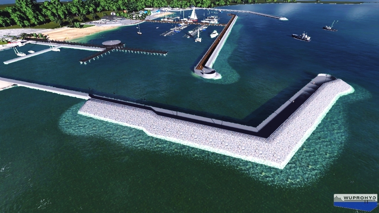 I etap realizacji całej inwestycji obejmuje budowę części Falochronu Północnego ze stanowiskami cumowniczymi dla osłony Basenu Rybackiego przed nadmiernym zafalowaniem, budowę stałego pomostu połączeniowego wraz z trzema pomostami pływającymi dla 98 jachtów. Pomost będzie łączył falochron z lądem i wyposażony zostanie w stanowiska sprzętu ratunkowego, drabinki ratownicze, bomy i postumenty poboru energii.