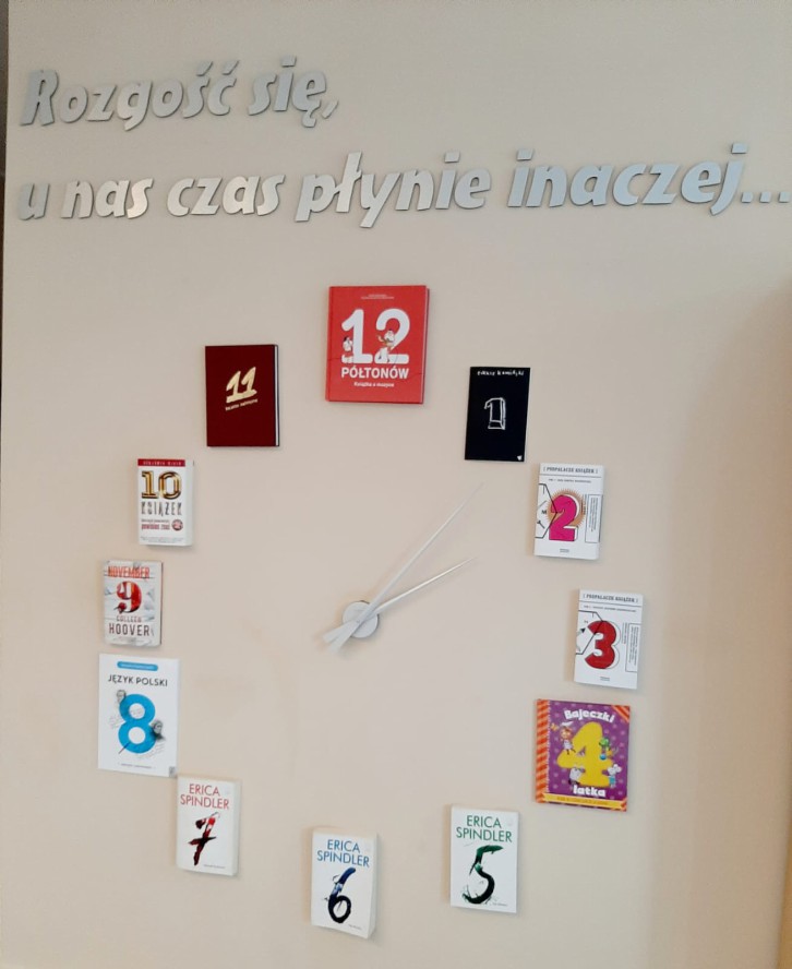 O tym, że czytanie książek to dobry pomysł o każdej porze dnia, przypomina nowy zegar, który pojawił się na parterze Miejskiej Biblioteki Publicznej w Wejherowie. Zamiast cyfr znajdziemy tam okładki książek. Z wyborem lektury nie będzie problemu, bo czytelnicy będą mogli wędrować już między regałami. To jedna ze zmian, która wprowadzona została od poniedziałku (13 lipca).