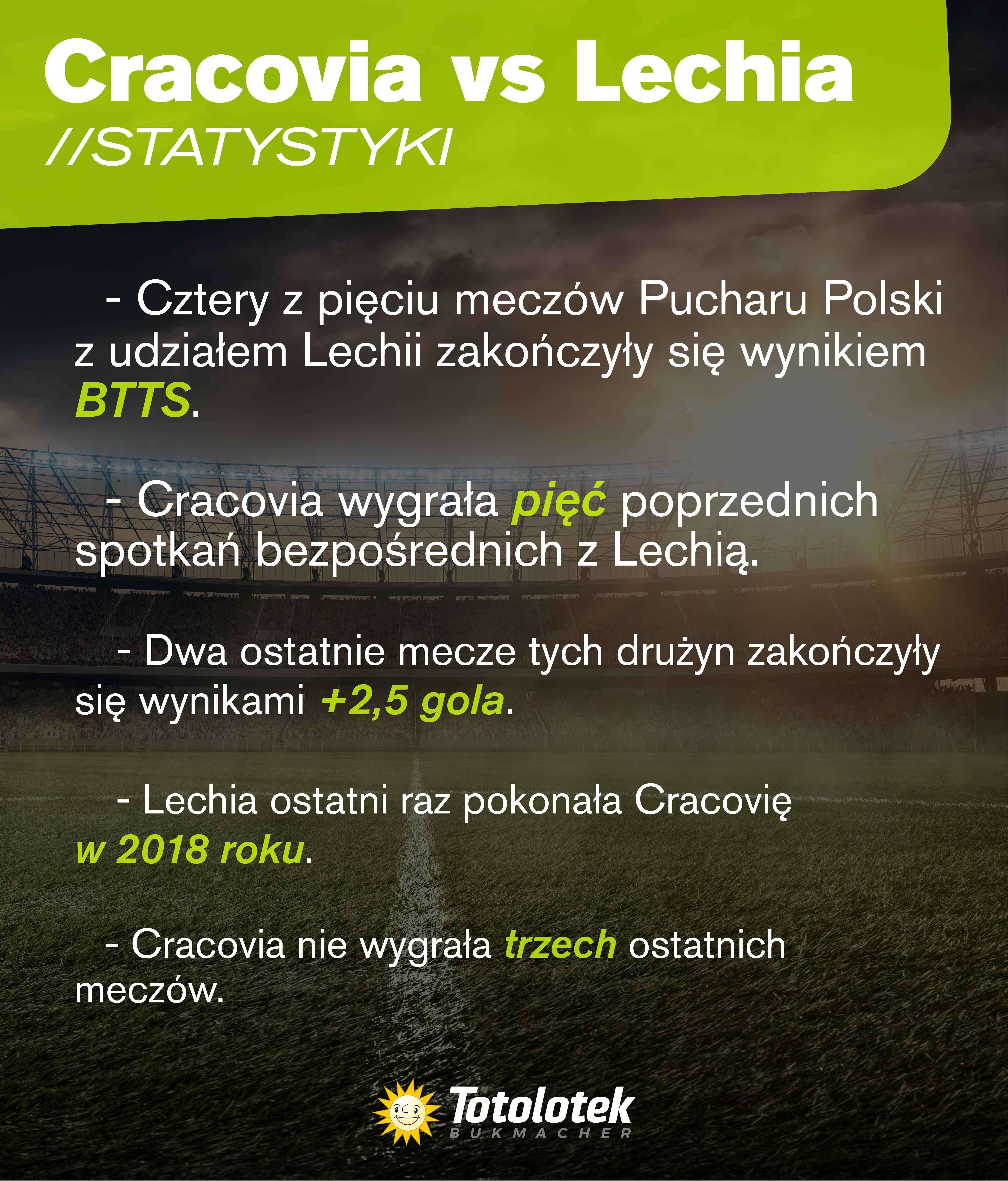 Statystyki – Cracovia vs Lechia • Cztery z pięciu meczów Pucharu Polski z udziałem Lechii zakończyły się wynikiem BTTS.