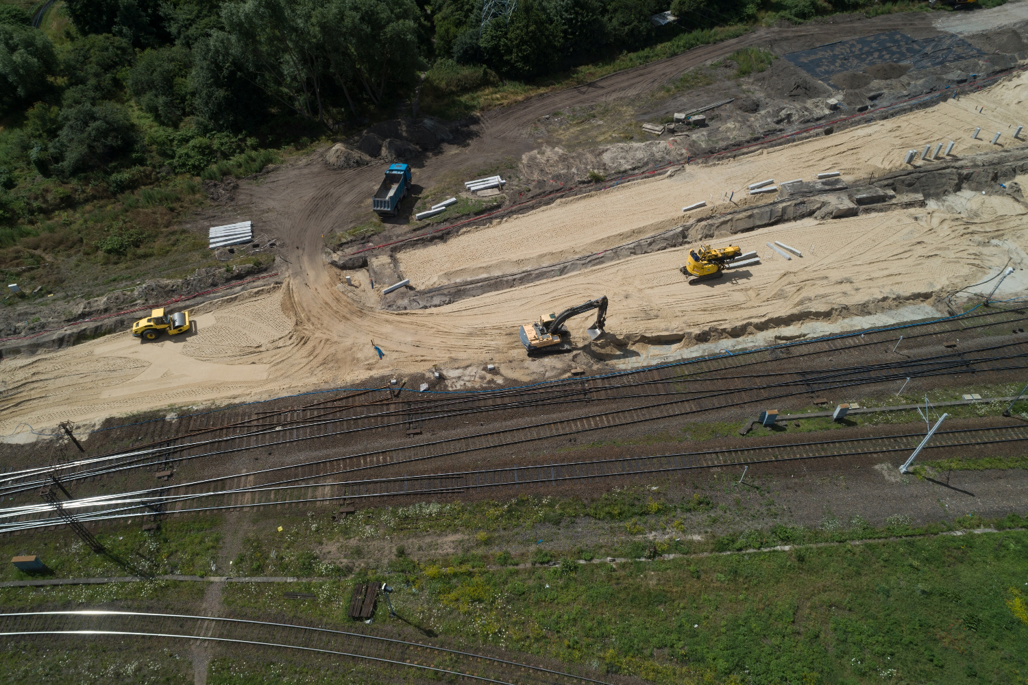 Słupy, bramki i elementy konstrukcji stoją już na stacji Gdańsk Zaspa Towarowa. Jeszcze w sierpniu rozwieszana będzie tam sieć trakcyjna. Jak podaje biuro prasowe, na stacji oraz na szlakach Gdańsk Główny – Gdańsk Zaspa Towarowa i Gdańsk Zaspa Towarowa – Gdańsk Wiślany, w miejscu 30 km starych torów oraz 76 starych rozjazdów przygotowano teren pod nowy układ torowy. Wykorzystano do tego ponad 6,5 tys. żelbetonowych pali i prawie 150 studni do odwodnienia.