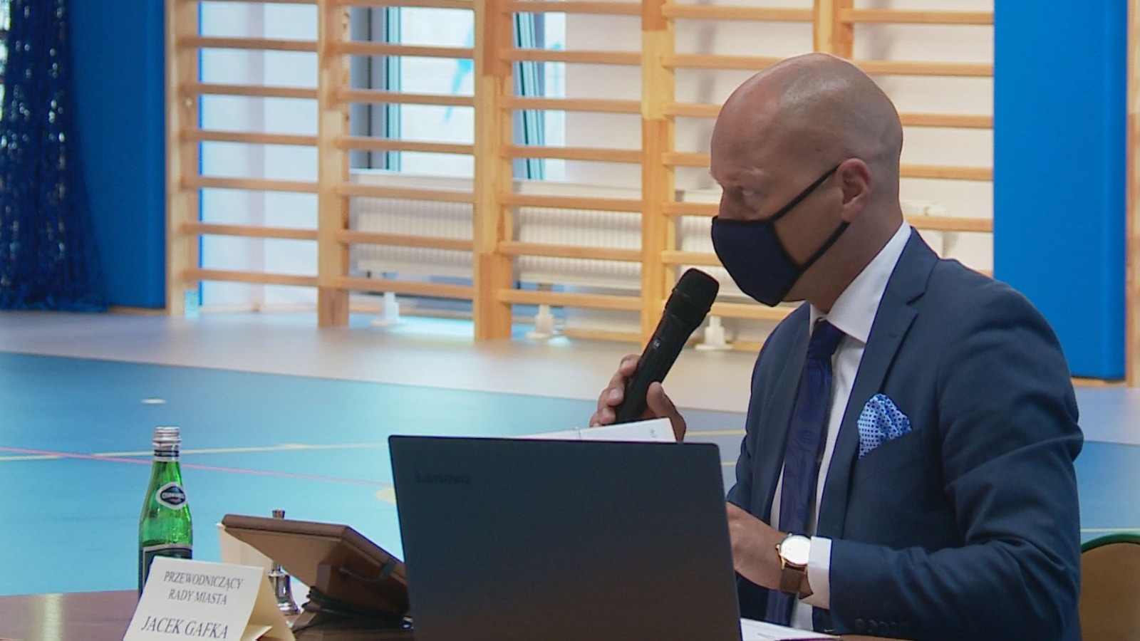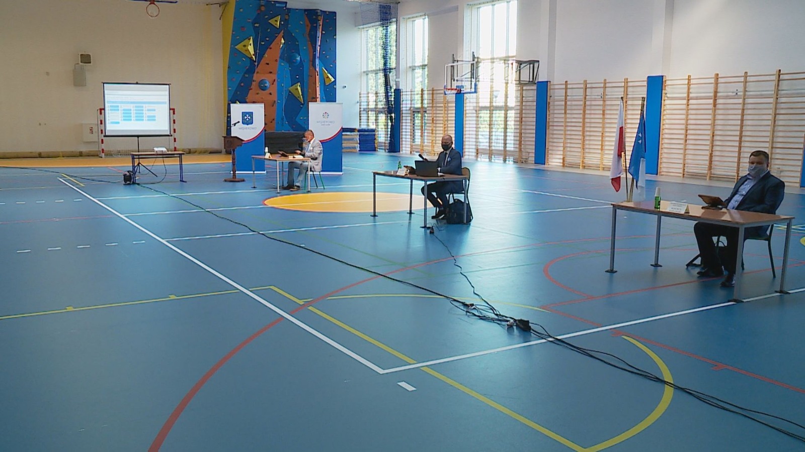 Po raz kolejny sesja Rady Miasta Wejherowo odbyła się w hali sportowej przy Szkole Podstawowej nr 5 - z zachowaniem wymagań sanitarnych i środków bezpieczeństwa związanych z COVID-19.