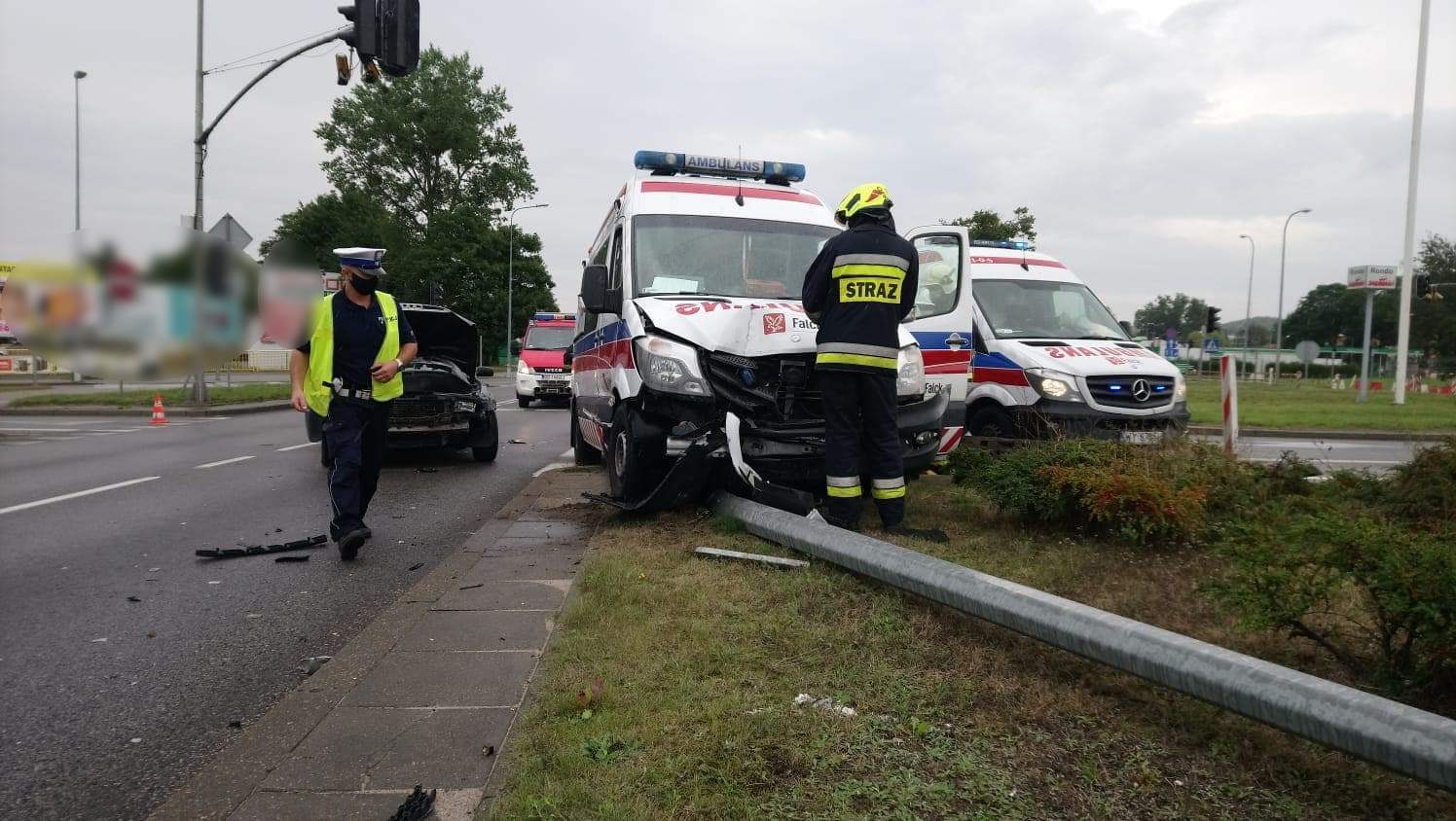 Groźnie wyglądające zdarzenie drogowe wydarzyło się na rondzie Solidarności w Wejherowie w sobotę 5 września. Doszło tam do zderzenia samochodu osobowego z karetką.