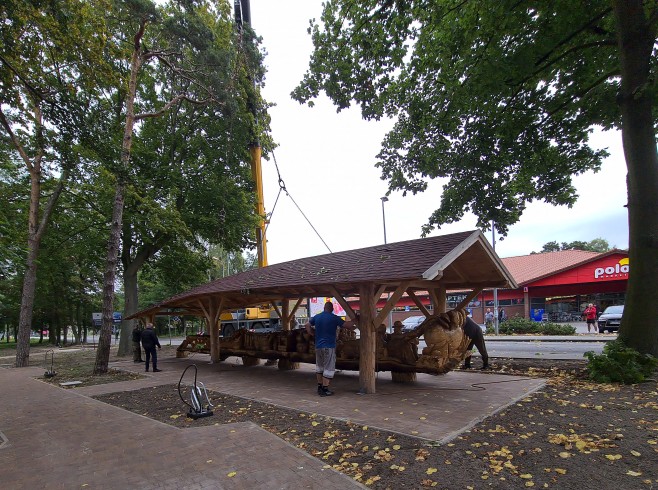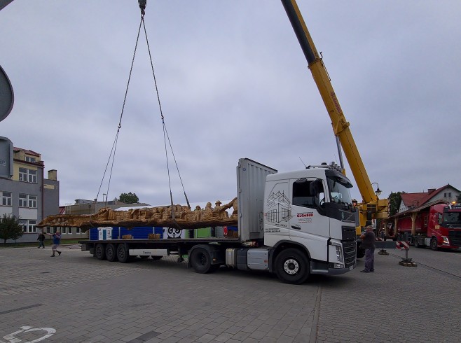 Monumentalna atrakcja, dzięki której do Helu trafił Rekord Guinnessa za najdłuższą rzeźbę wykonaną z jednego kawałka drewna, umiejscowiona została początkowo na ulicy Wiejskiej w Helu. W poniedziałek (15 września) mieszkańcy miasta mogli po raz kolejny poczuć emocje przy przenoszeniu rzeźby na miejsce, gdzie od początku miała trafić.