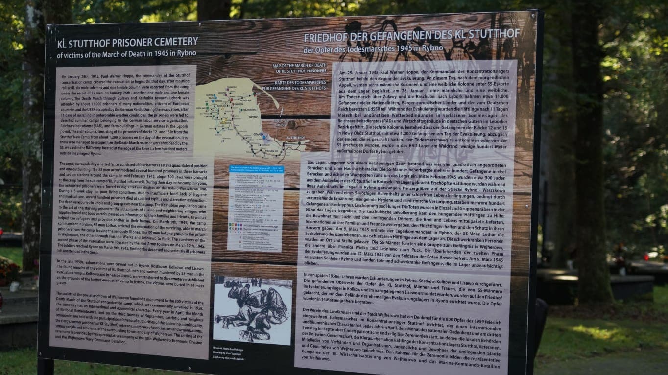W styczniu 1945 roku wydano rozkaz ewakuacji niemieckiego obozu koncentracyjnego i zagłady Stutthoff. Obdarci, często bez butów, więźniowie szli na pewną śmierć. W niedzielę (20 września) w Rybnie mieszkańcy Kaszub Północnych oddali hołd pomordowanym przez Niemców.