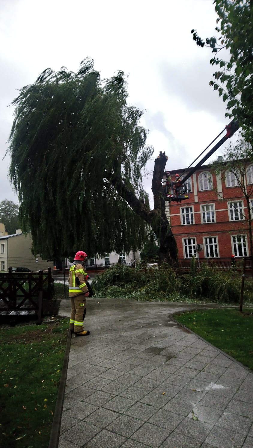 – System korzeniowy zaczął wychodzić spod chodnika, a silny wiatr bujał wierzbą. Strażnicy miejscy zabezpieczyli miejsce i drogi dojazdowe. Na miejsce wezwano strażaków z Państwowej Straży Pożarnej i służby ochrony środowiska – informują funkcjonariusze.