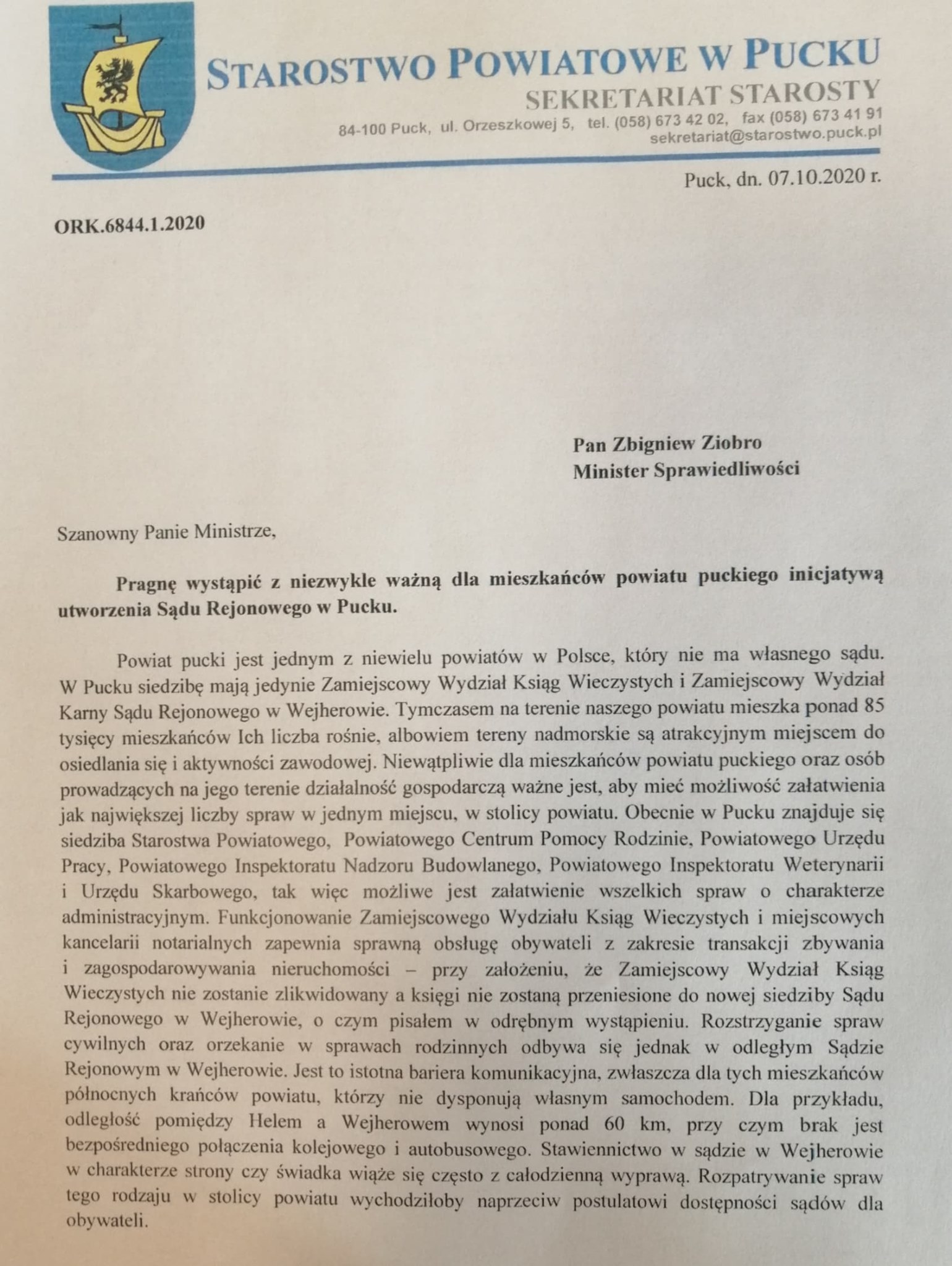 Jak podkreśla burmistrz pucka decyzji tej nie konsultowano z samorządowcami, a ci nie wyrażają na to zgody. Pismo do Ministra Sprawiedliwości Zbigniewa Ziobro wystosował pucki starosta Jarosław Białk z prośbą o utworzenie w mieście Sądu Rejonowego.