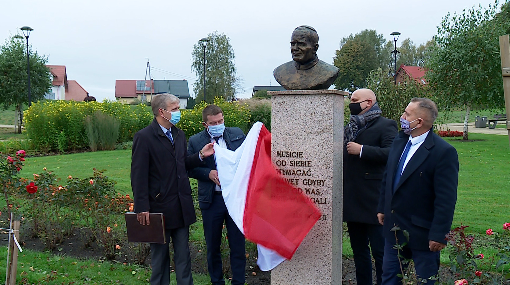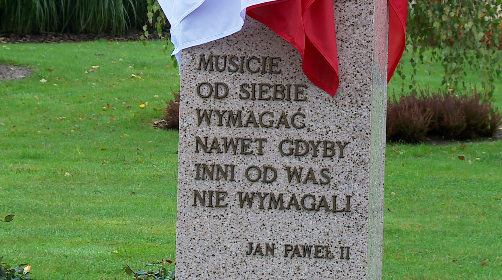 Na rzeźbie umieszczono słowa Jana Pawła II: „Musicie od siebie wymagać, nawet gdyby inni od was nie wymagali”.