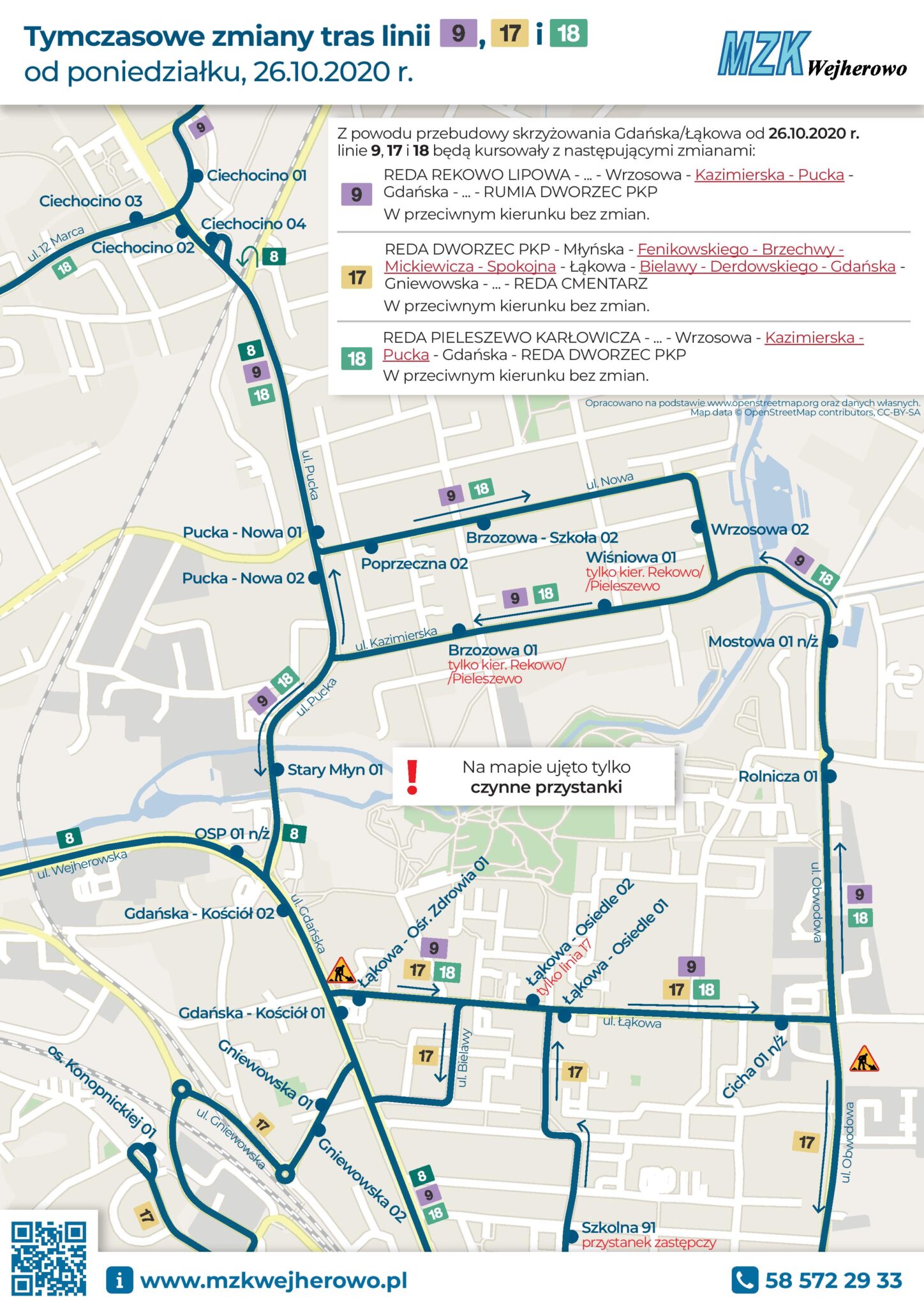 Od 26 października zmianie ulegają również trasy autobusów 9, 17 i 18. Szczegóły przedstawia poniższa mapa na stronie mapa: