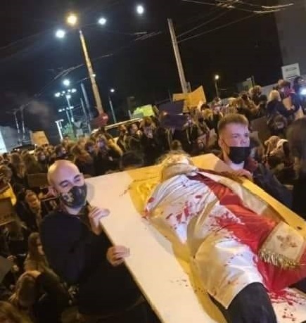 Niestety, w tego typu protestach uczestniczą także często osoby, które być może - albo nie rozumieją powagi sytuacji - bądź źle ją interpretują i „przekraczają pewne granice”. Przykładem takiego zachowania jest incydent, do którego doszło w Gdyni podczas jednej z demonstracji. Młodzież niosła na drzwiach kukłę, która okryta była zakrwawioną flagą Polski. Miała ona symbolizować kobietę, której życie na skutek zaostrzenia ustawy aborcyjnej może być zagrożone.