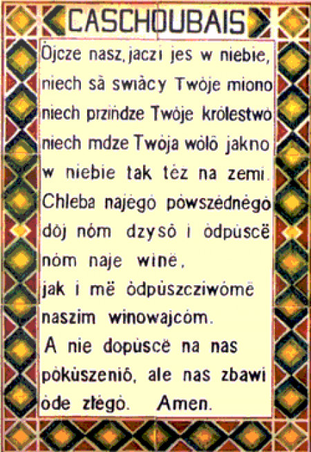 Według Katechizmu Kościoła Katolickiego Modlitwa Pańska, czyli „Ojcze nasz”, jest „rzeczywiście streszczeniem całej Ewangelii". Ten najważniejszy tekst modlitwy chrześcijan znajduje się m.in. w kościele Pater Noster w Jerozolimie. Jak czytamy na kaszubia.com, „we wrześniu 2000 roku odsłonięto tablicę z kaszubską wersją ‘Ojcze nasz’ w jerozolimskim kościele – najważniejszy moment pielgrzymki Kaszubów, zorganizowanej przez Zrzeszenie Kaszubsko-Pomorskie, do Ziemi Świętej”.