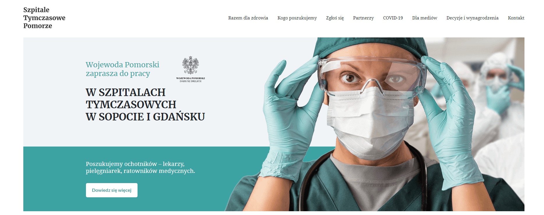 Wojewoda pomorski uruchomił stronę internetową www.szpitaletymczasowe.gda.pl. Portal poświęcony jest szpitalom tymczasowym budowanym w Sopocie i Gdańsku. Na stronie znajdują się informacje dotyczące projektu szpitali tymczasowych na Pomorzu, jak i formularz aplikacyjny, za pomocą którego można zgłaszać chęć do pracy w placówkach.