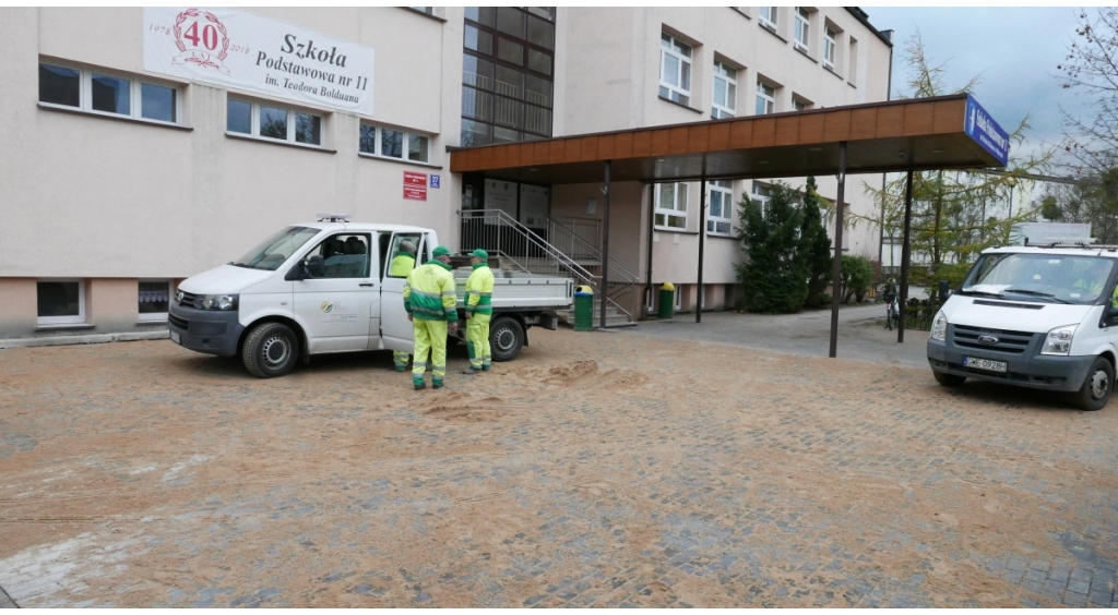 Przed budynkiem szkoły została ułożona nowa nawierzchnia z kostki brukowej o powierzchni 152 metrów kwadratowych. Zostaną ustawione tam dwie zadaszone wiaty na 52 rowery.