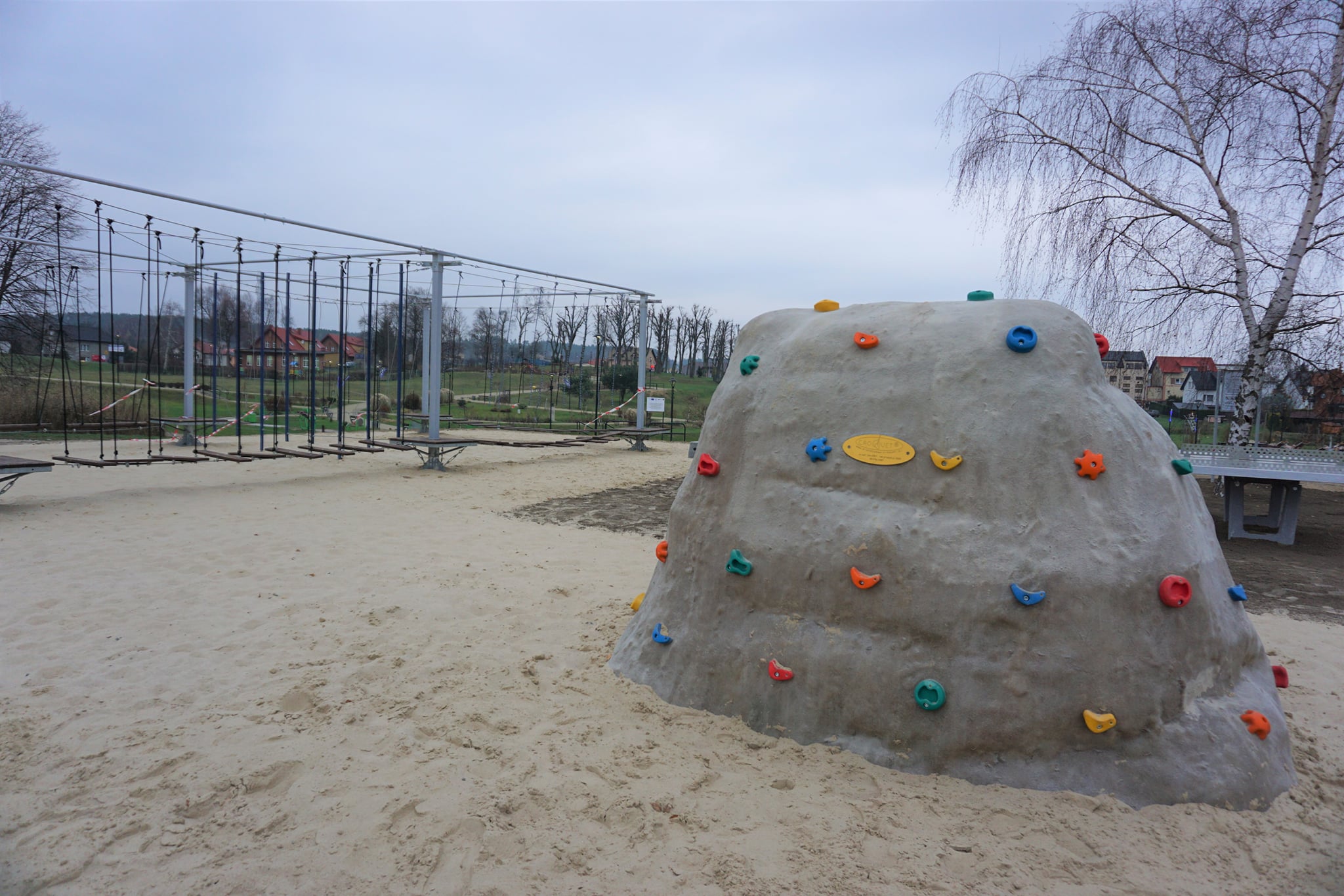 Zjeżdżalnia, skałka wspinaczkowa czy park linowy to tylko część elementów nowego placu zabaw, który został wykonany i...