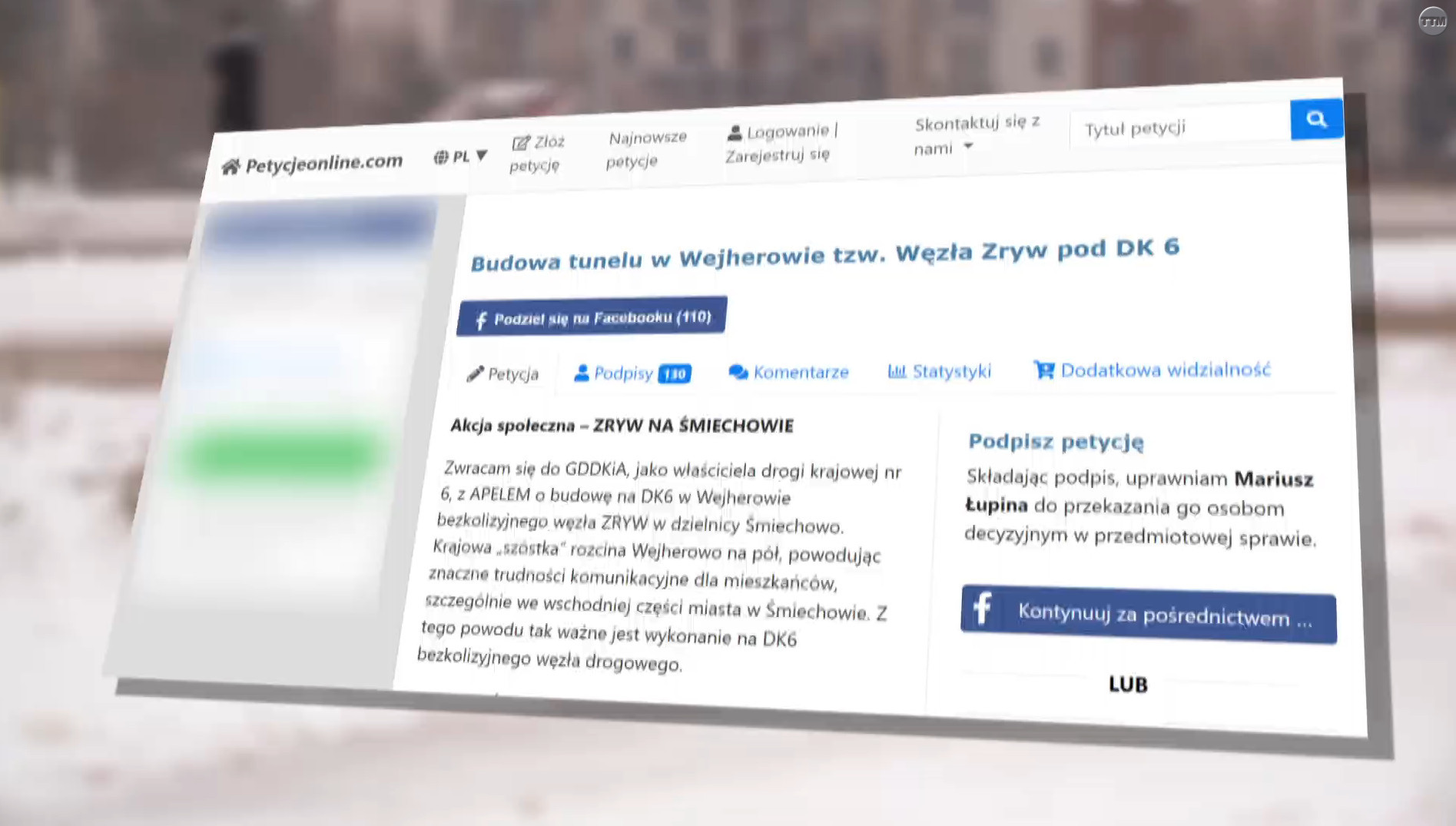 Mieszkańcy Wejherowa mogą podpisywać petycję, w której wyrazić można swoje poparcie dla budowy bezkolizyjnego połączenia północnej i południowej strony miasta. Akcja pn. „Zryw na Śmiechowie” ma wywrzeć wpływ na decyzję o budowie tunelu pod krajową szóstką przez Generalną Dyrekcję Dróg Krajowych i Autostrad.