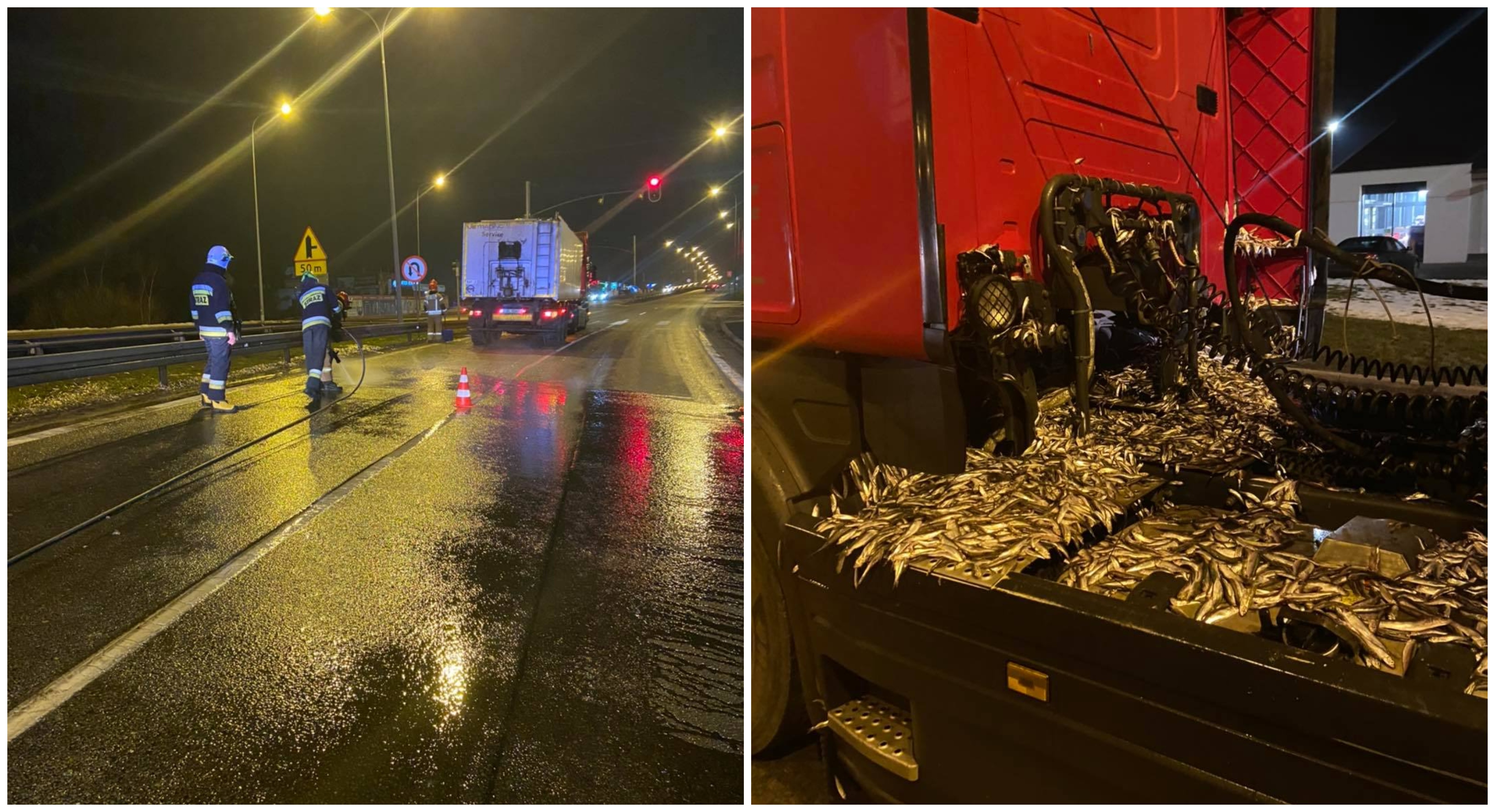 W tirze przewożone były 24 tony ryb. Wysypały się 2 tony.