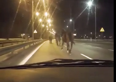 Nietypowe sceny miały miejsce w nocy z soboty na niedzielę w Wejherowie. Oczom jednego z kierowców ukazały się trzy konie idące drogą krajową numer 6. Jak relacjonuje Czytelnik portalu nadmorski24.pl, który film z tego niecodziennego spotkania wysłał do redakcji, miało to miejsce około godziny 3:00 w okolicach węzła Zryw.