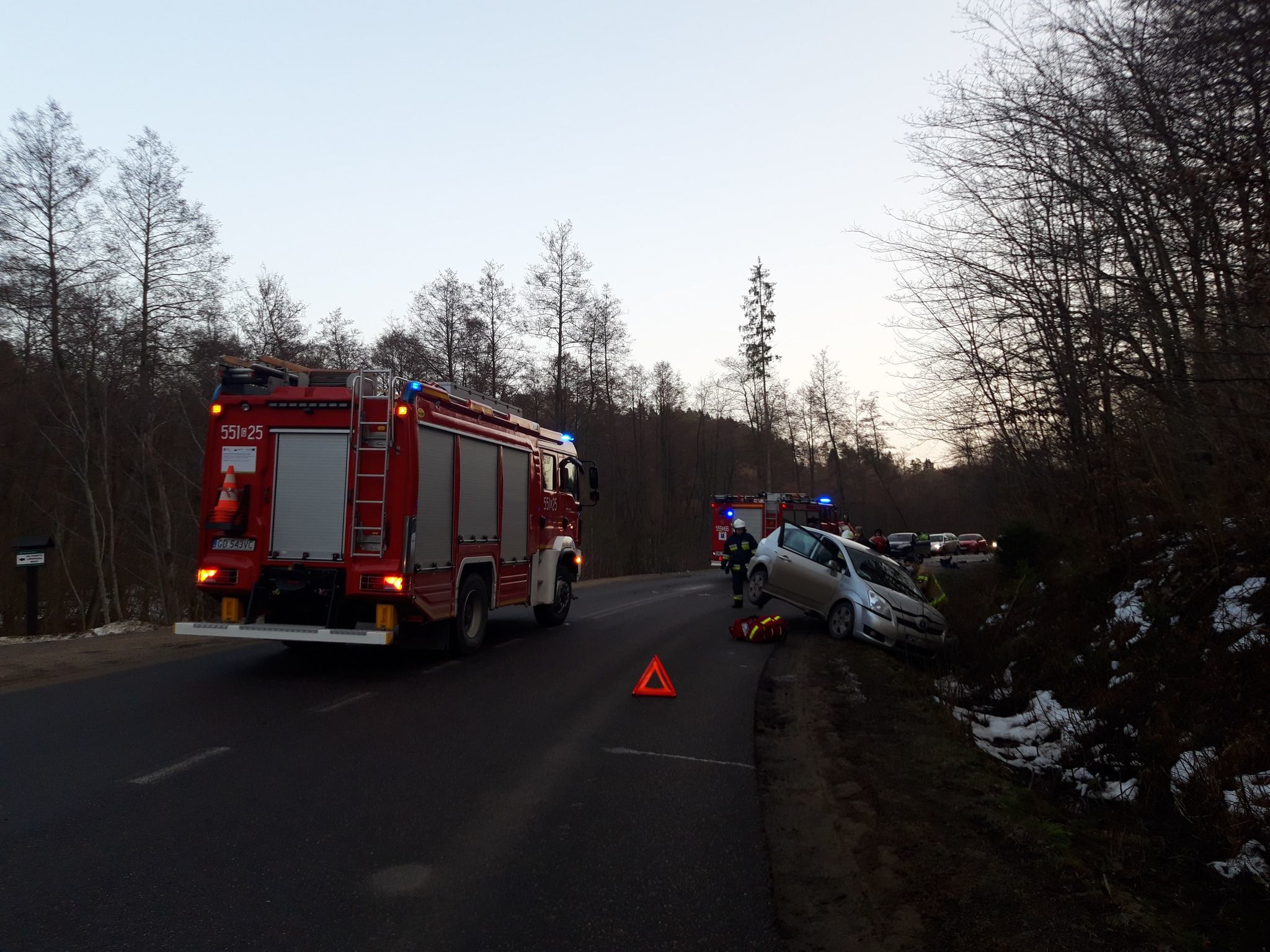 Państwowa Straż Pożarna w Wejherowie o godzinie 16:35 otrzymała zgłoszenie o wypadku, do którego doszło w Wejherowie na drodze wojewódzkiej nr 218 w kierunku Sopieszyna. Na miejsce zadysponowano dwa zastępy straży pożarnej. Była konieczna interwencja karetki pogotowia ratunkowego. W wypadku zderzyły się trzy samochody osobowe.