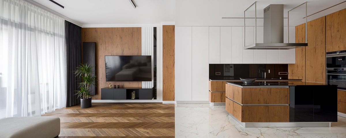 Resztki jedzenia, oleje czy plamy wilgoci mogą negatywnie odbić się na strukturze materiału, stąd w kuchni tak dużą popularność zyskują płytki ceramiczne. Przy okazji wykończenia posadzki w tym pomieszczeniu dobrze jest zdecydować się na ciemny wzór, co znacznie ułatwi to utrzymanie kuchni w czystości.