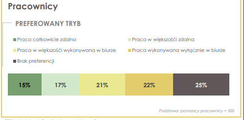 W marcu 2020 roku pracę zdalną rozpoczęło 11 proc. pracowników. Z końcem czerwca odsetek ten zmniejszył się do 10,2 proc., a na koniec III kwartału 2020 roku wyniósł 5,8 proc. Na Pomorzu praca poza firmą możliwa jest w 67 proc., lecz nie dla wszystkich ich pracowników.