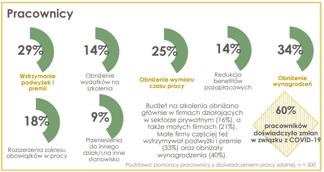 Sześciu na dziesięciu pracowników w naszym regionie doświadczyło zmian w pracy związanych z koronawirusem. Niektórym obniżono wynagrodzenie (34 proc.), wstrzymano podwyżki i premie (29 proc.) czy zmniejszono wymiar czasu pracy (25 proc.). Części z pracowników pracodawca rozszerzył zakres obowiązków i przeniósł do innego działu.