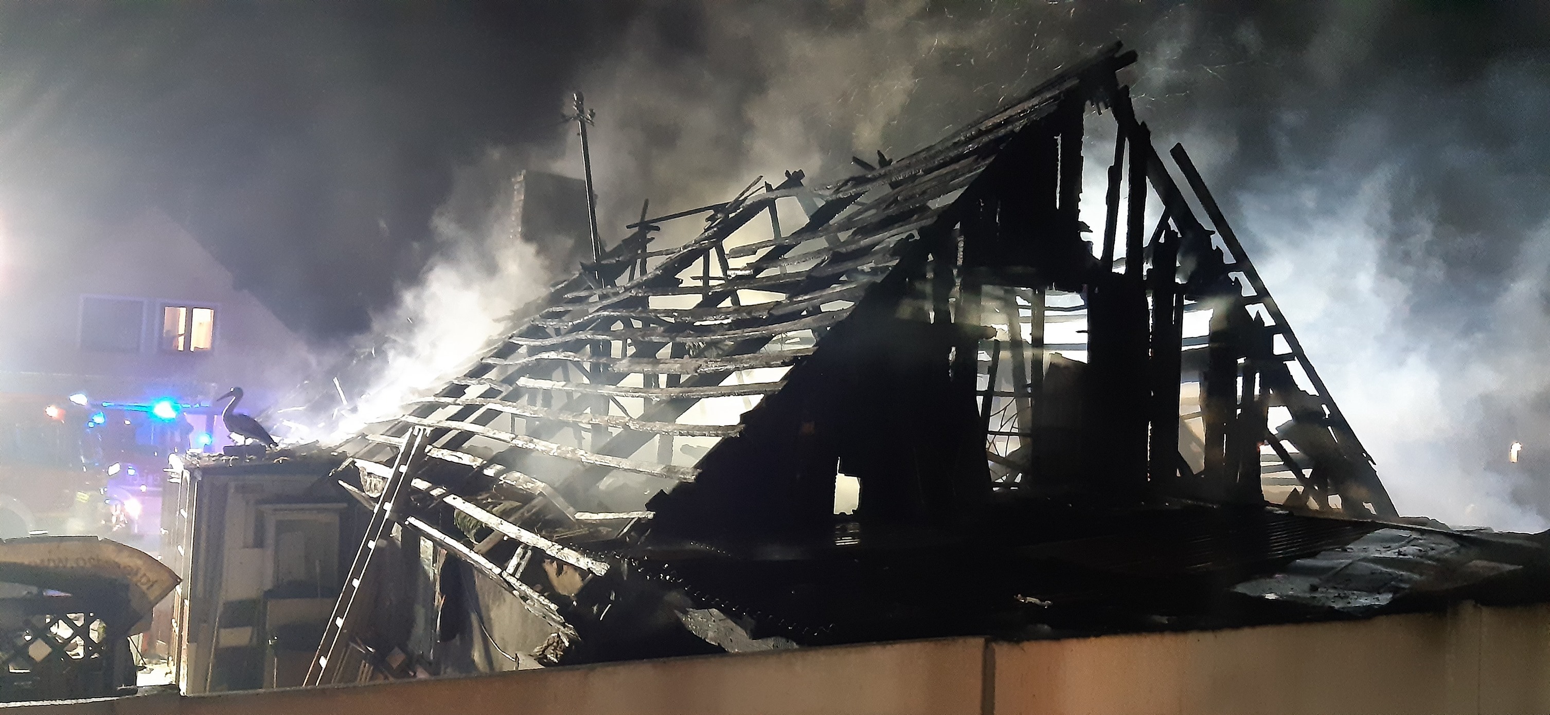Najprawdopodobniej paliło się poddasze o konstrukcji mniej więcej 10x5 metra. Ze względu na warunki atmosferyczne i silny wiatr strażacy zabezpieczyć musieli także sąsiednie budynki.