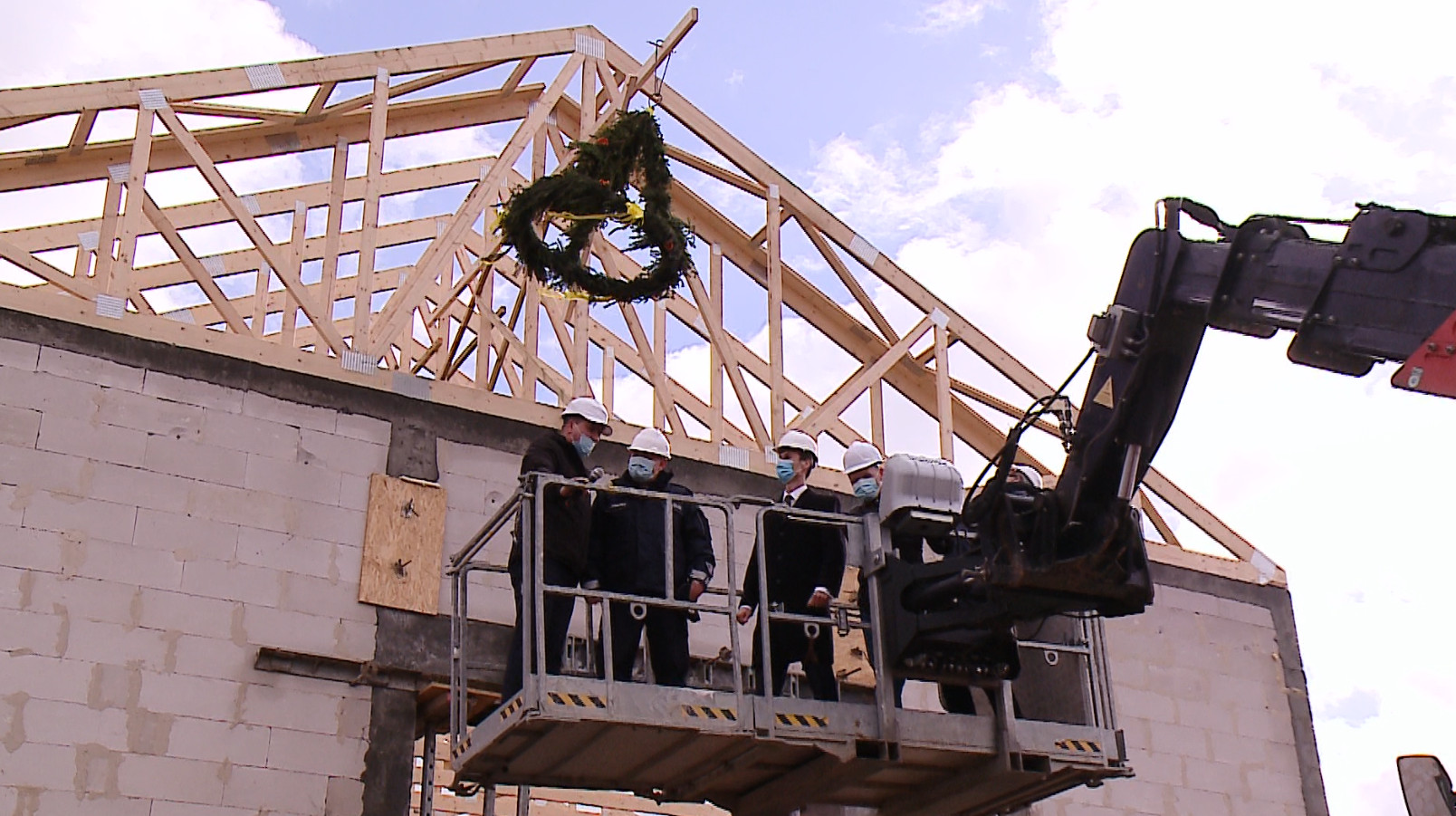 W piątek (12 marca) uroczyście zawieszono wiechę na pierwszej części budynku Centrum Samorządowego, gdzie w przyszłości będzie komisariat policji, remiza Ochotniczej Straży Pożarnej, siedziba ratownictwa medycznego oraz zarządzania kryzysowego.