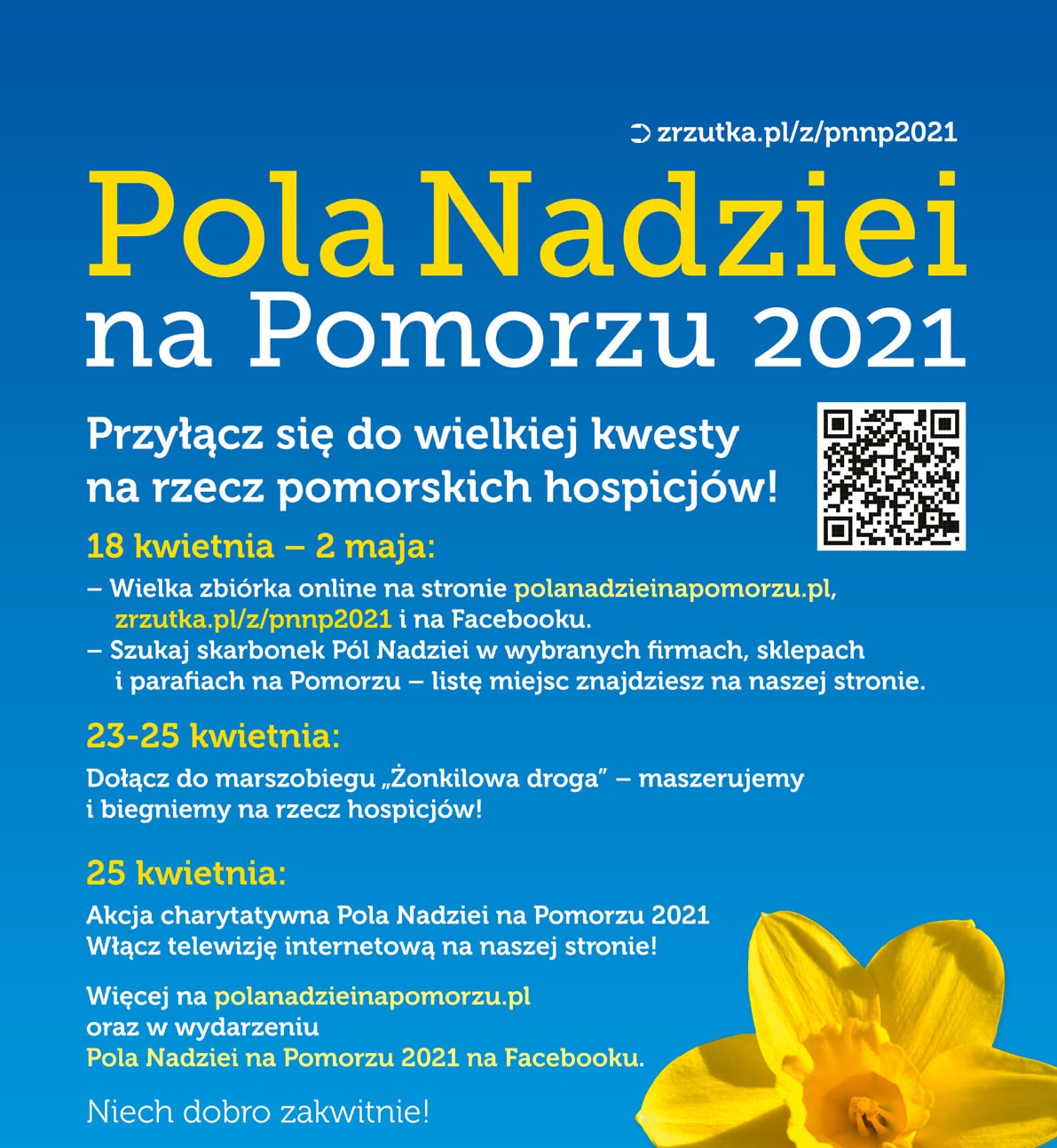 Pola Nadziei organizowane są od lat w wielu miastach Polski, w tym m.in. w Pucku, Gdyni, Gdańsku i Sopocie. W tym roku kwestujących wolontariuszy z puszkami spotkać będzie można na ulicach w niedzielę 25 kwietnia. Za datek do skarbonki otrzymać będzie można żonkilową naklejkę.