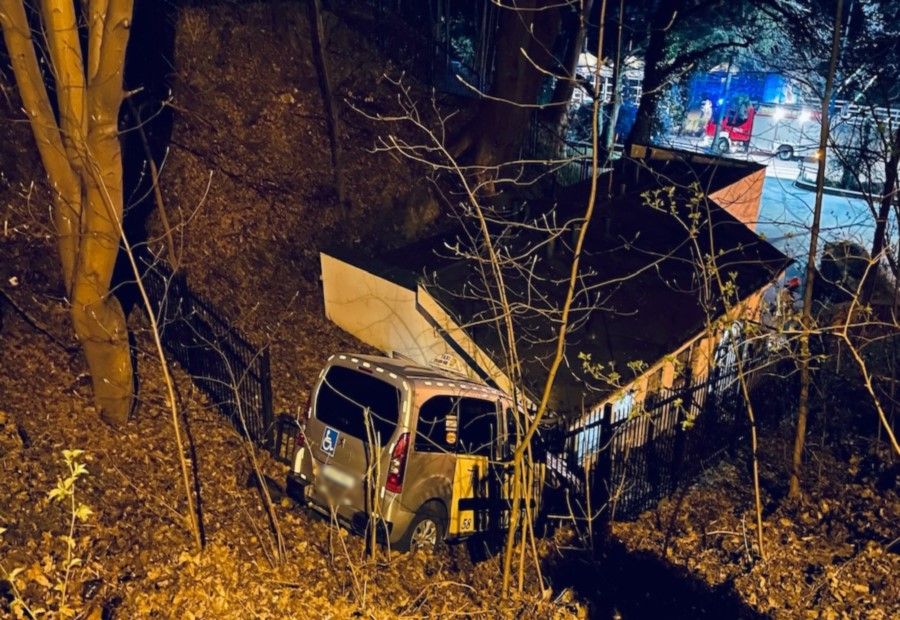 Pijany kierowca z Gdyni zjechał ze skarpy i uderzył w toaletę. Mężczyzna stracił panowanie nad kierownicą, a jego samochód zatrzymał się na budynku publicznego szaletu.