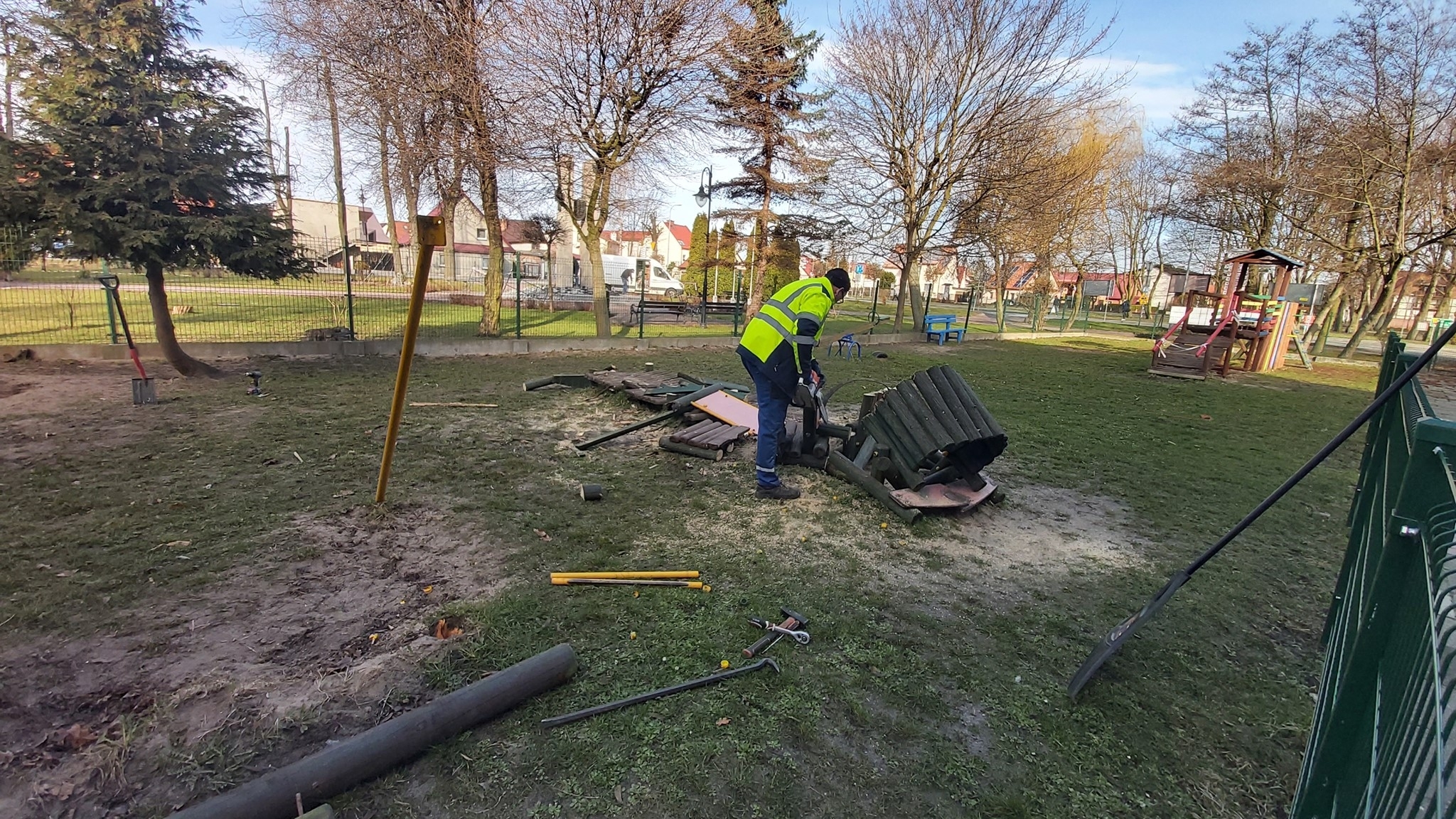 Pandemia koronawirusa opóźniła remont. Teraz ruszyły pierwsze prace – zdemontowano stare urządzenia i przygotowano teren na nowe atrakcje. Plac zabaw w nowej odsłonie ma być gotowy w połowie maja.